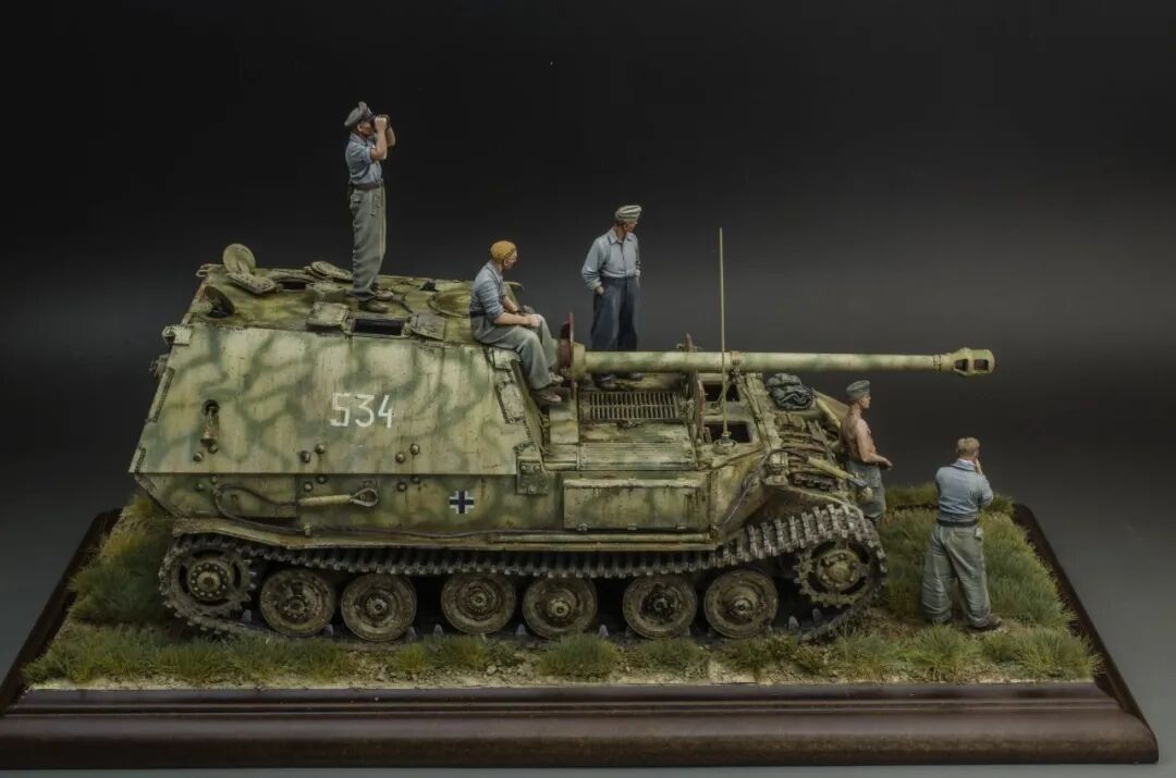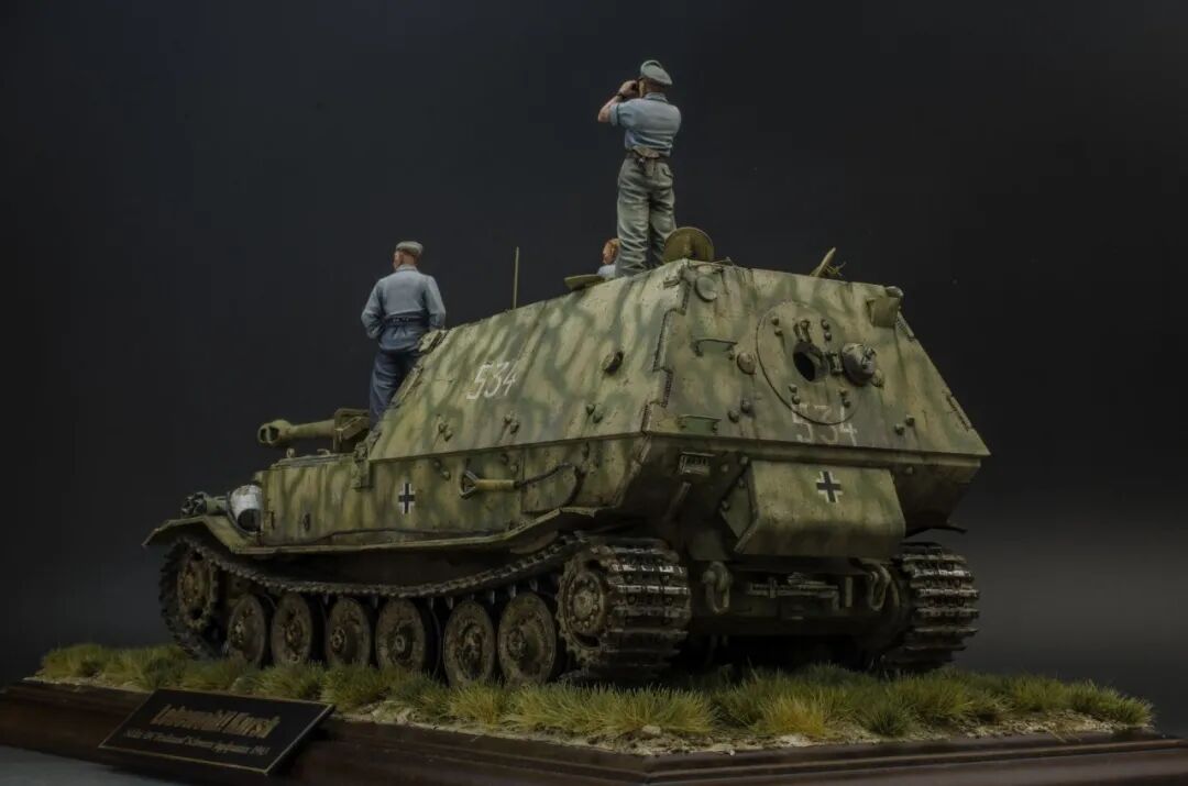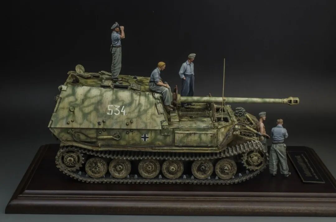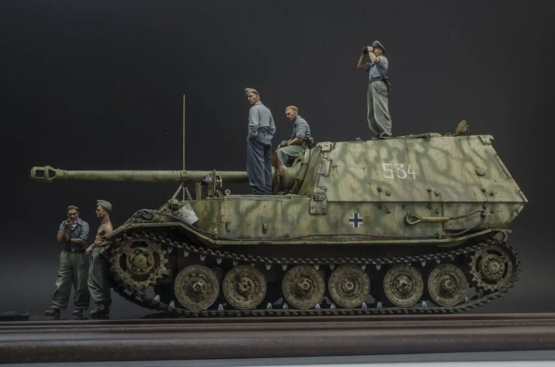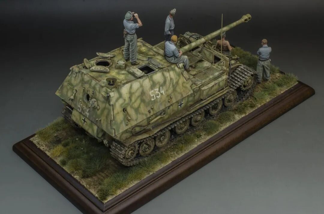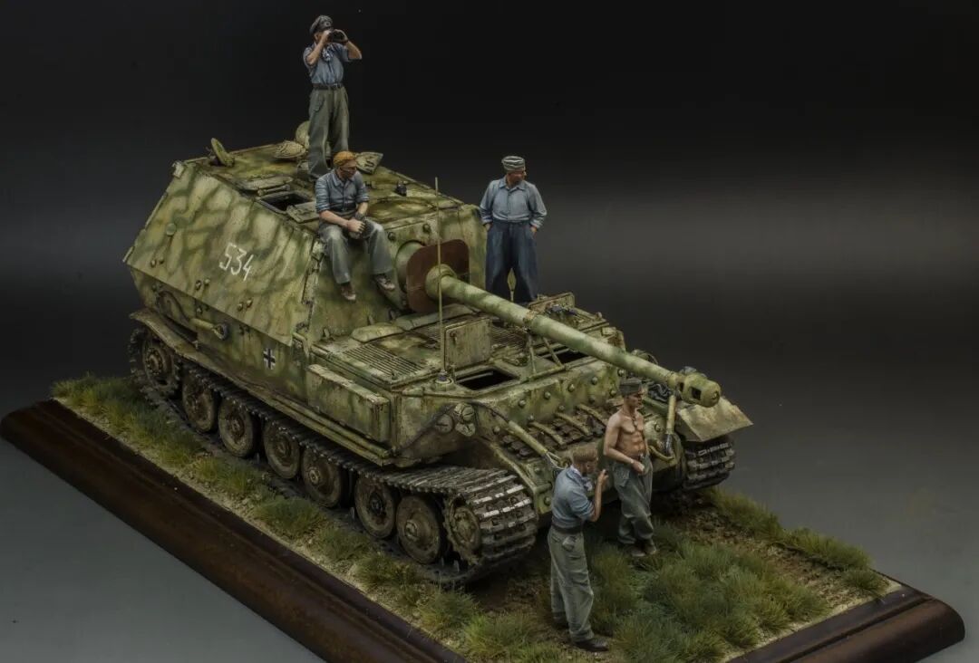 涂装旧化采用了656重歼击团654营的534号车,这辆车子涂装采用了比较细碎多变的绿色条纹涂装样式,而且比较有趣的是654营经过争夺某车站的战斗并遭受重大损失后,534号车仍幸存下来,但却永远无法到达战役目的地了。指挥官只能站在车顶手执望远镜瞭望,其他乘员也都疲惫不堪倚在战车上……