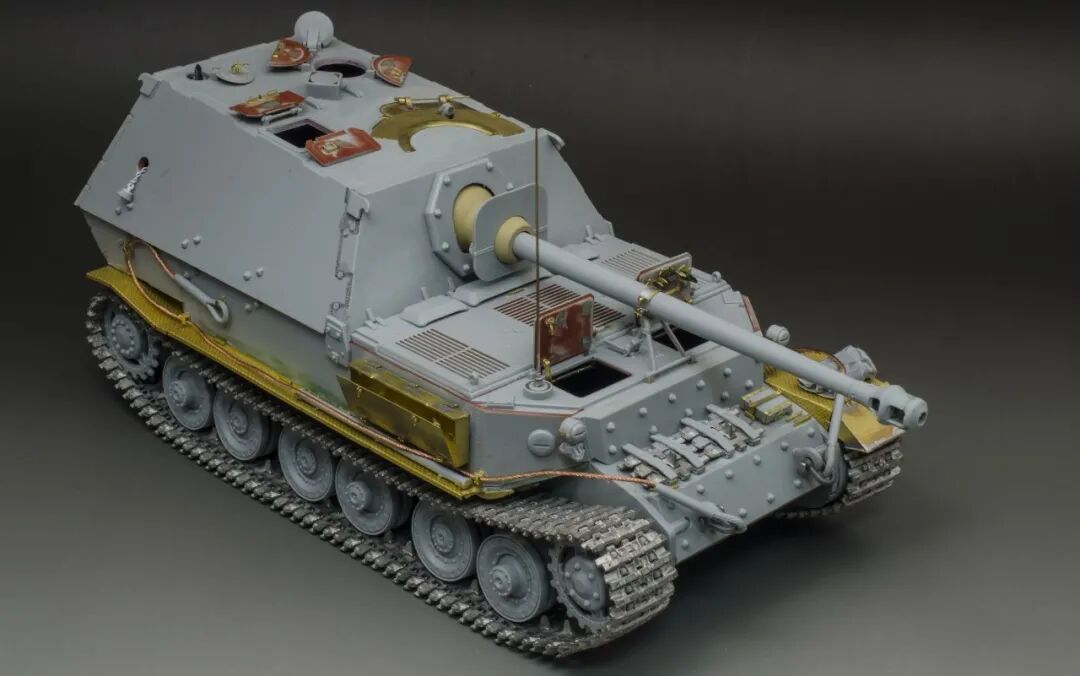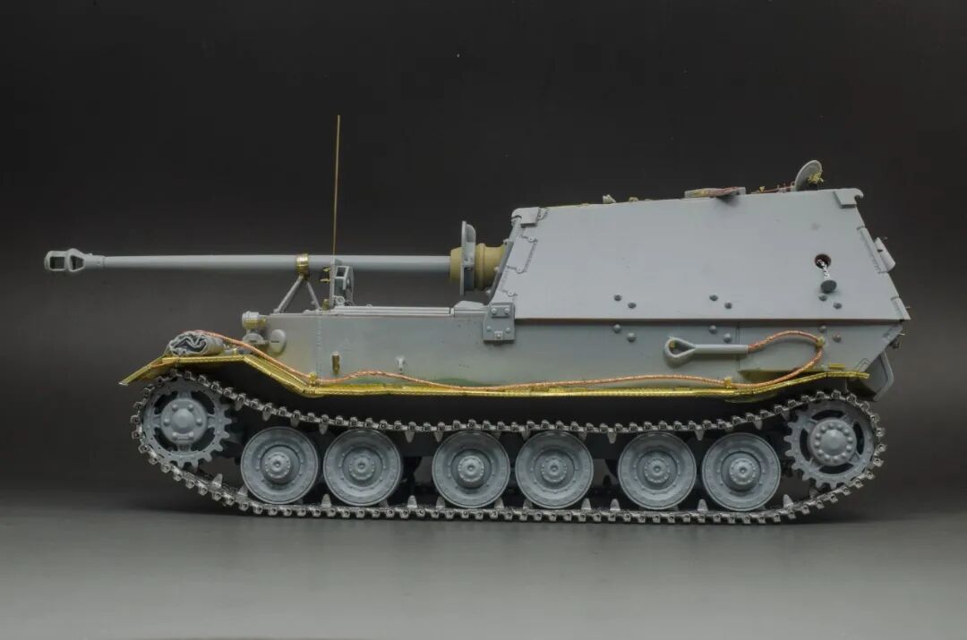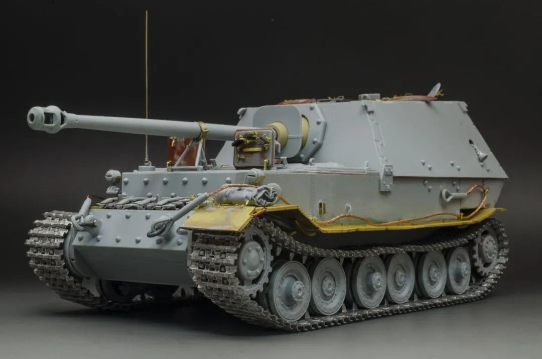 以前觉得费迪南这车好丑,憨逼的很,单排轮很难看,炮塔靠后也不好看,不过做出来之后,感觉还不错诶。