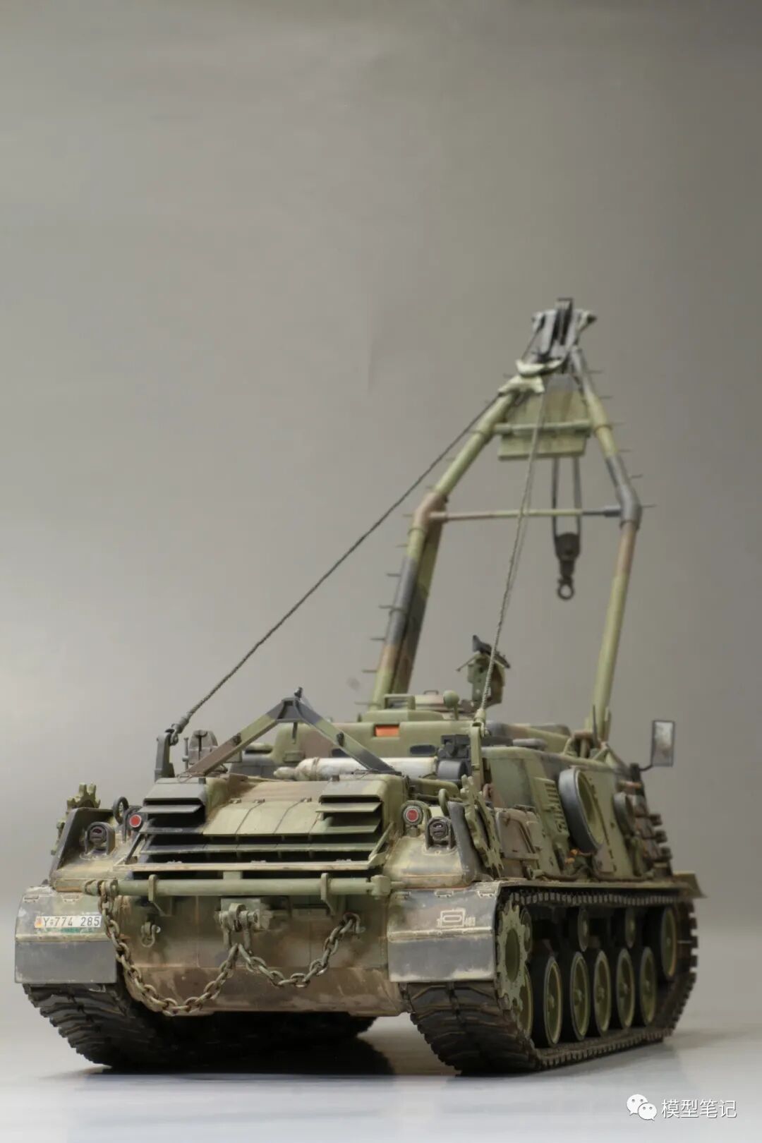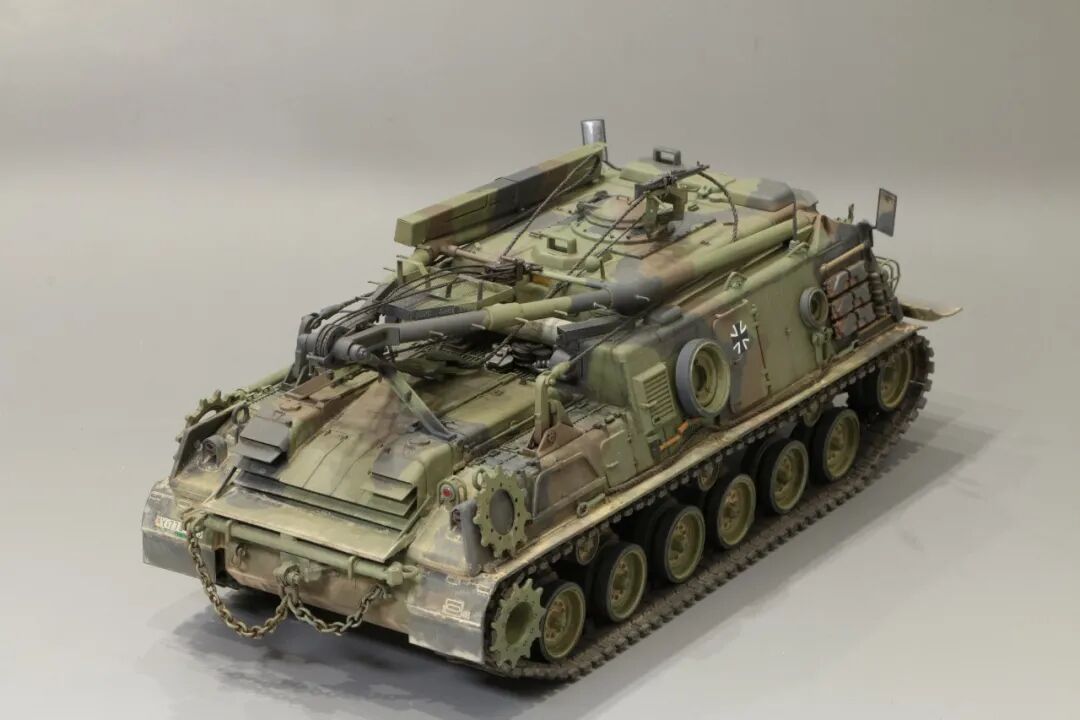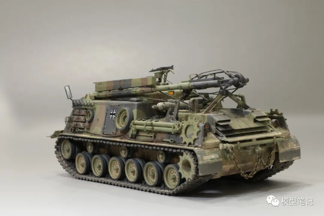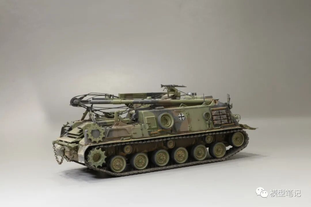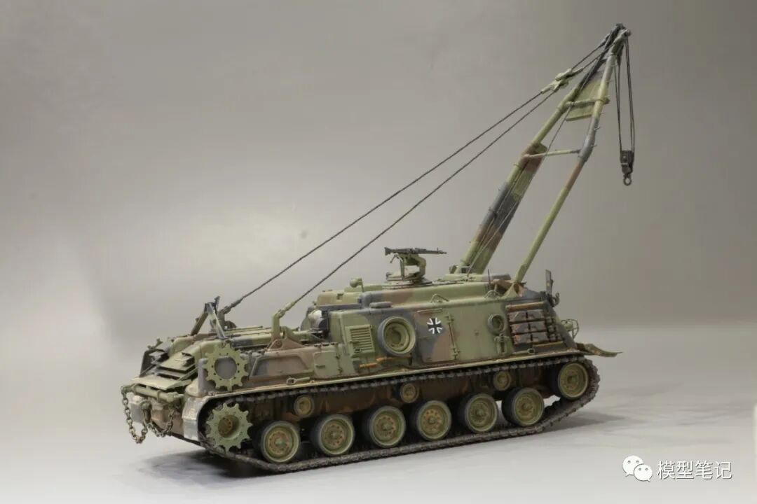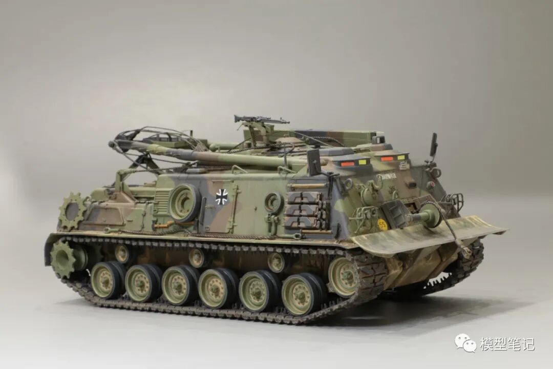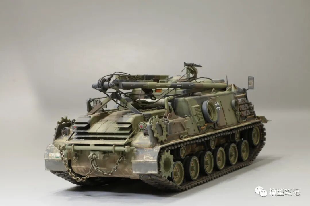 该车采用大陆公司(Continental)AVSI-1790-6A型12缸风冷喷射式汽油机。1972年4月,该公司接受了美国陆军的一项设计M88改进型车辆的合同。1973年,该车改用泰莱达因·大陆汽车(Teledyne Continental Motors)公司的AVDS-1790-2DR 12缸柴油机,功率为551kW(750马力),此外,还匹配了改进的传动装置并进行了其他方面的改进。改造后车辆定名为M88E1,1975年3月又定名为M88A1。从1977年开始该车连续生产,到1989年陆军接受最后一批M88A1时共采购2148辆,另外有878辆M88需要改造,总数为3026辆。今天分享的是德国的M88G1,在美军M88A1基础上加点零件,吊臂也不同,具体的差异小编就不太懂了~