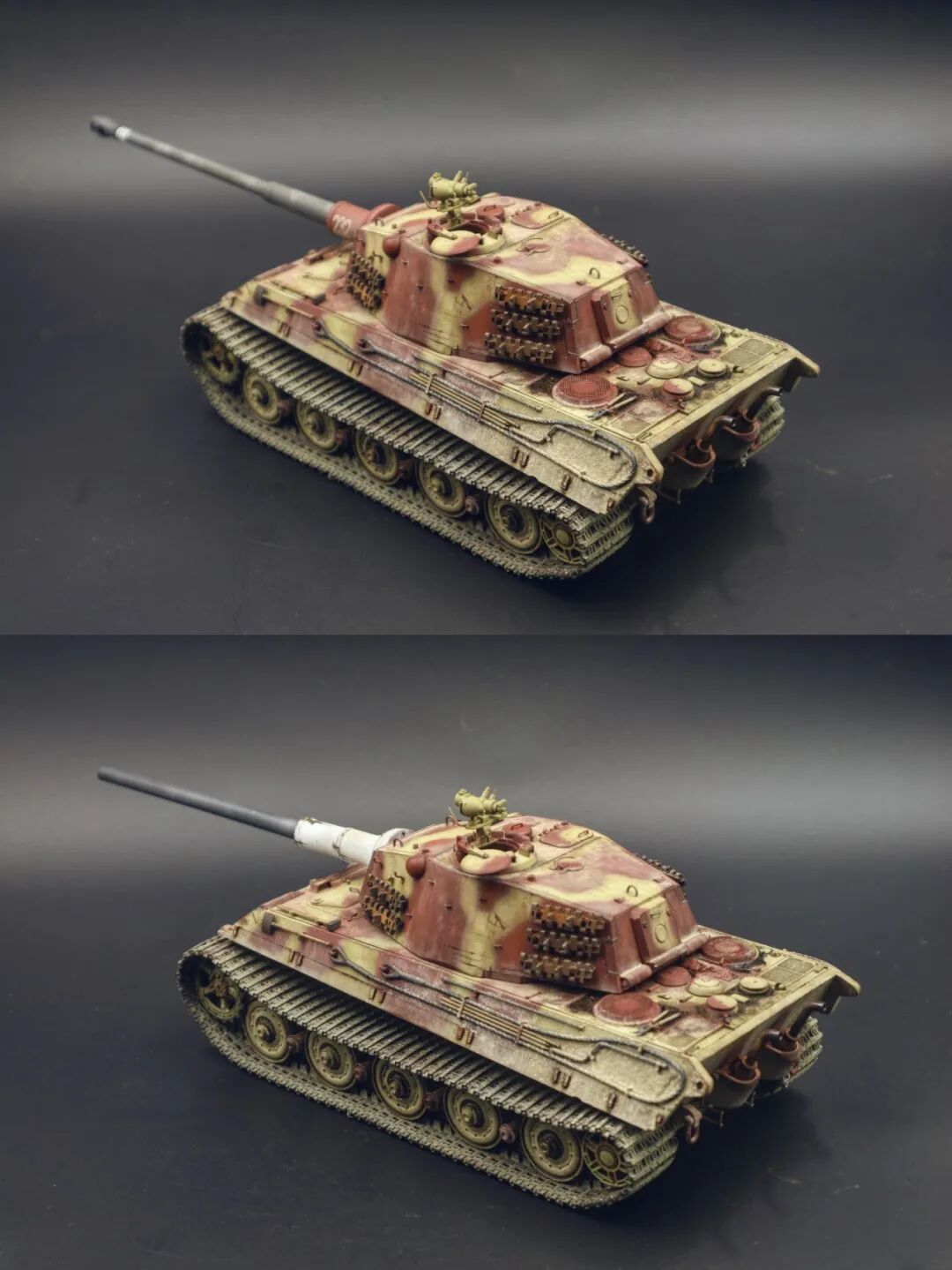 哦,还有板件信息,作者用的是AMMO1/35架空105虎王,另外改造了一个128的炮,一车两J,又是双倍快乐!希望大家喜欢!