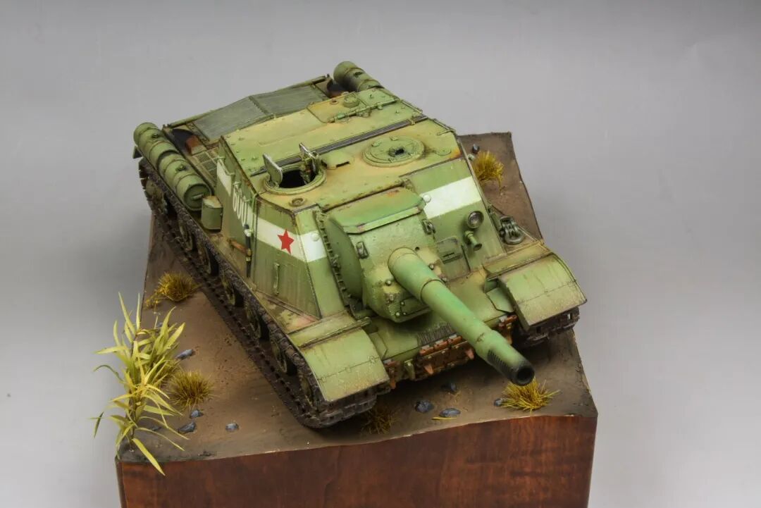 经过紧张的设计生产,该新型自行火炮很快正式装备部队,凭借强大的火力和高爆弹的性能在战场上发挥了重要作用,所以也被后人誉为“斯大林的铁拳”。