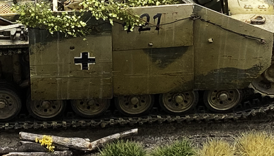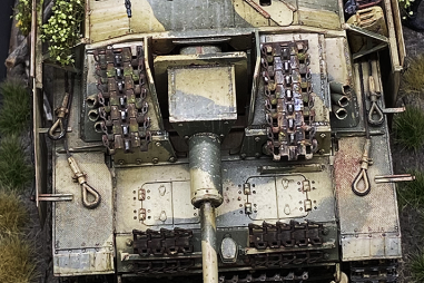 今天的主角是1943年3月后的早期型,特点就是电台前的装甲倾斜度加大,左侧观察缝改为圆形栓子,抽气扇移至战斗室后方正中央,顶部右前方加装机枪盾,部分车辆安装烟雾弹发射器。