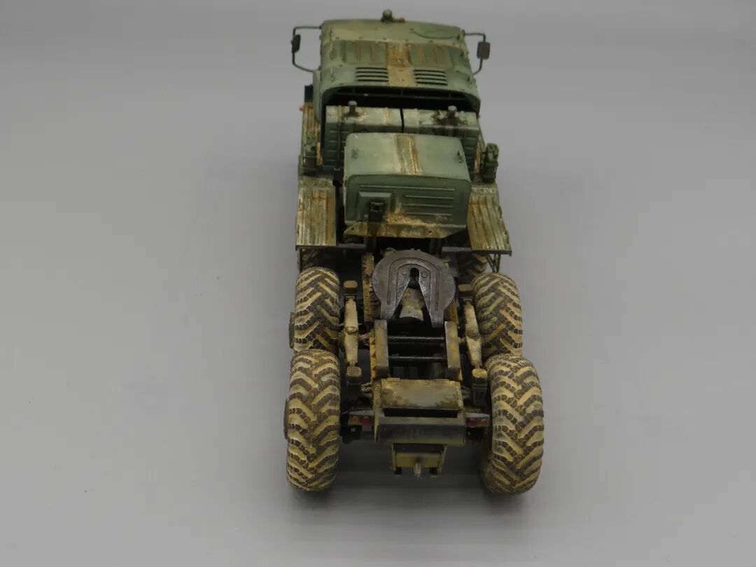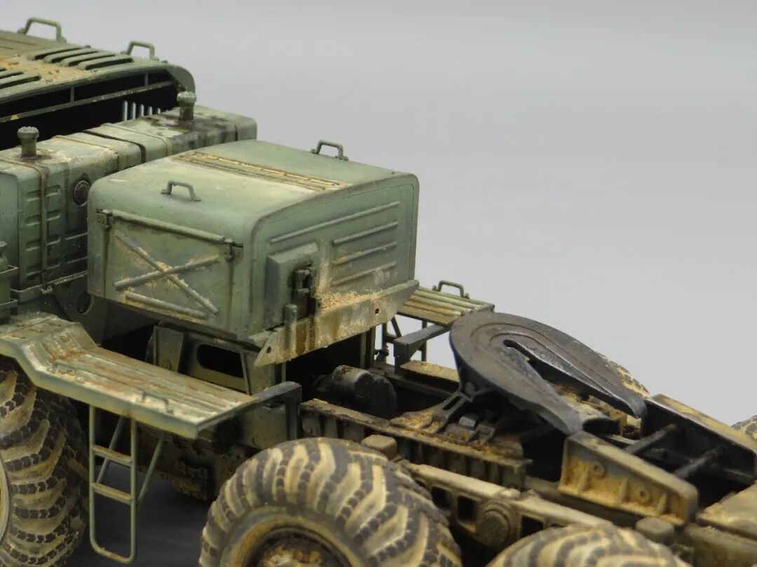 MAZ-537的发动机布置在驾驶室的后面,这样驾驶室的高度就可以降低,要知道车身高度对军用卡车来说是一项重要的指标,如果太高,你可能进不了运输机,进不了防空洞,甚至装载到火车平板上进行机动运输车超过了铁路隧道的最大高度,这些都是不能接受的。