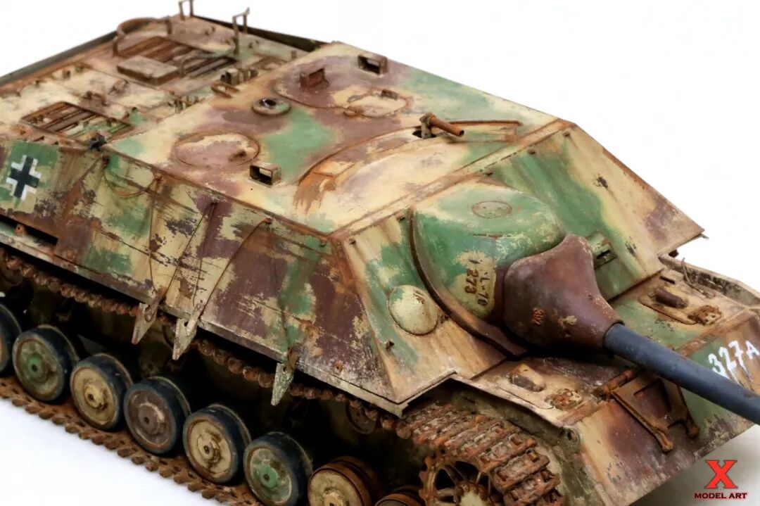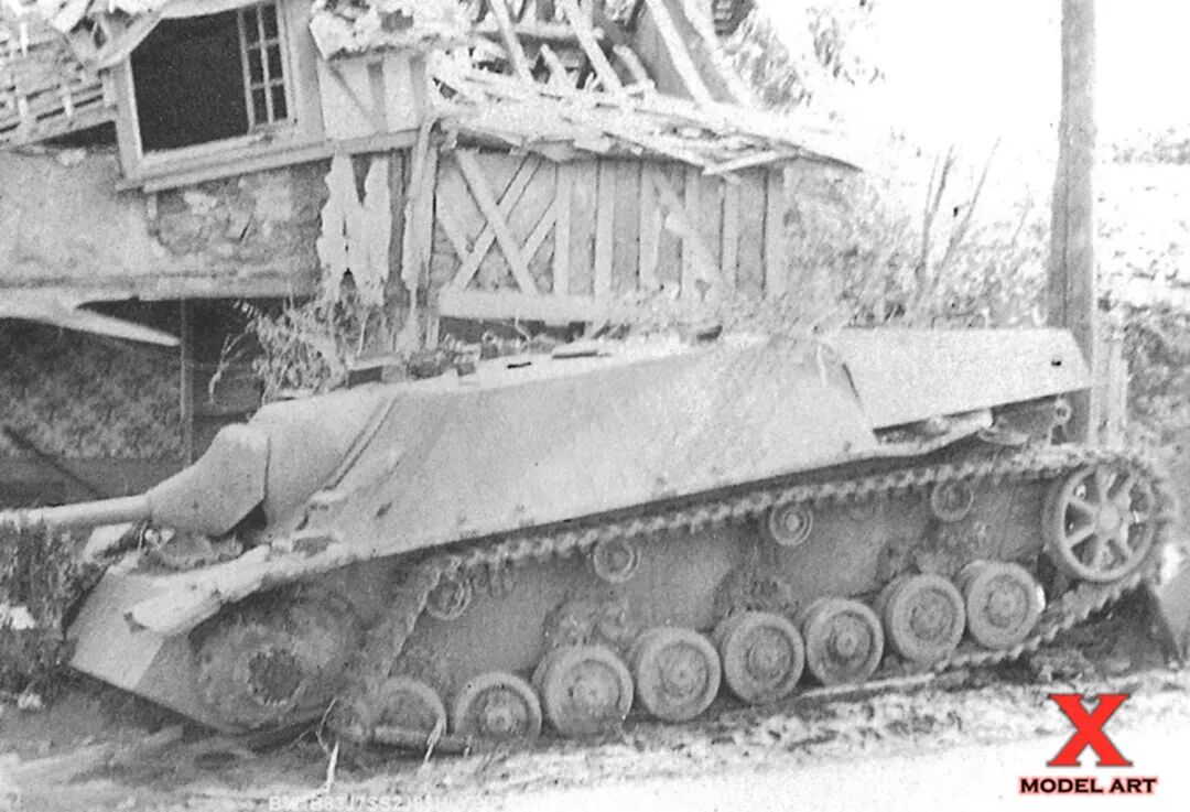 四号自行反坦克炮保有基本型态的四号坦克底盘,但原有的垂直前部装甲被大角度倾斜的凸出前部装甲所取代。为了搭载全新的上部结构,本车变更内部设计,改变了油箱及弹药架的位置。因为本车没有炮塔,因此原本用以提供四号坦克炮塔旋转所需动力的马达便被移除了。