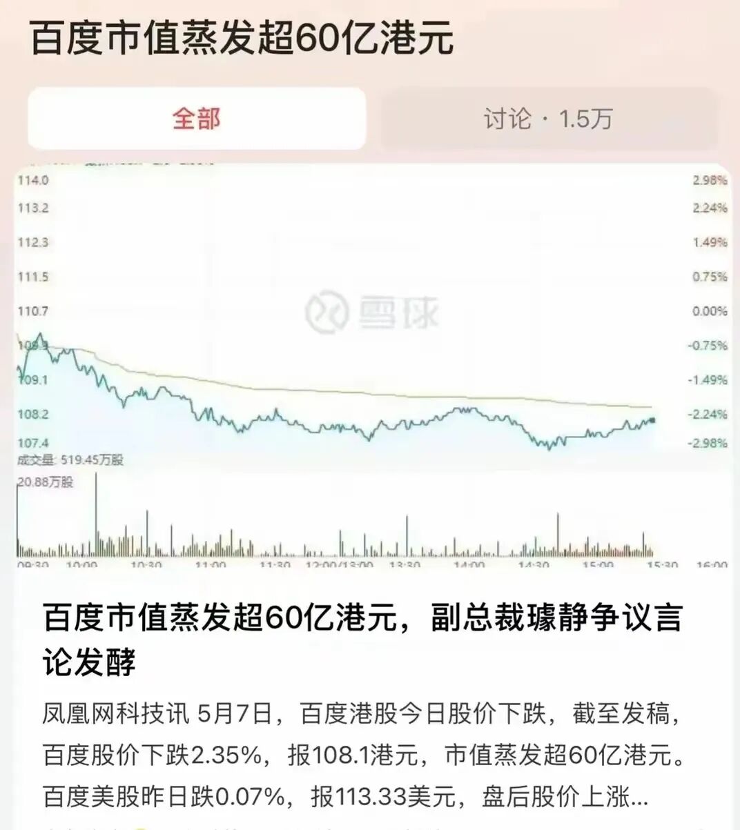要哭的是百度,因为一个人呈一时口舌之爽,让公司市值一下子蒸发了几十亿,老李大概头上冒火。只是,你自己用的人就像你自己找的对象,冷暖自知,怎么着也怪不得别人。不过,大佬们大概早就视金钱为一堆数字,多一点少一点又何干,不像咱老百姓,一个月不领薪水就日子难过。
