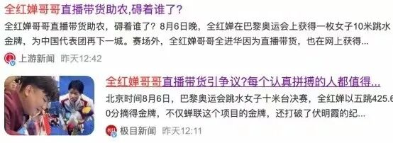 奥运跳水冠军全红婵最近爆火,她的哥哥在网上直播带货也火了,引起了网民的热议,很多网友站出来,说全红婵的哥哥全进华蹭妹妹的热点,有人说他丢妹妹脸的,也有说他利欲熏心的,更有许多阴阳怪气说着各种难听话的……以至于主流的官方媒体都看不下去了,亲自下场怼回去。