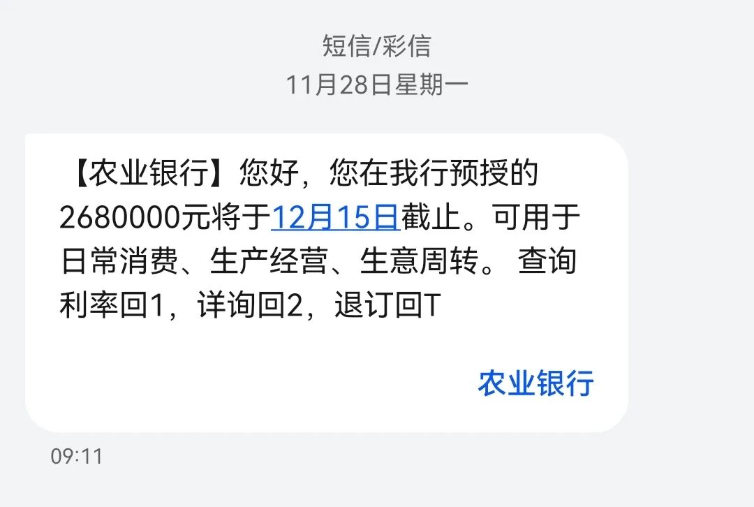 同样轰炸的还有银行,变着花样诱惑你花钱。这不,同样一家银行,第一天说我的额度是2680000元,隔天又变成了468000元。老眼昏花如我,像刚开始学数的小学生,不知道这两个数究竟哪个大。