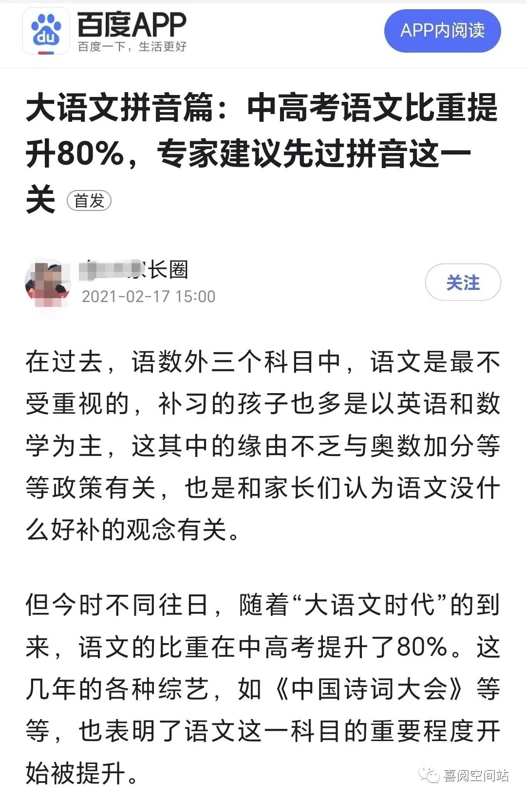 不舍得删除的题外话:从高考分值看,阅读理解的重要性显然比拼音高太多了,但普遍的现象是,家长们为拼音班一掷千金,却不舍得掏几十块钱买几本好书,实在是费解!