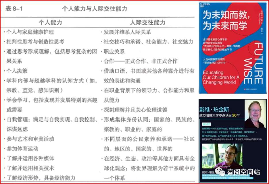 以长期权衡的标的才具有价值。哈佛大学研究生资深教授戴维·铂金斯在《为未知而教,为未来而学》上展示的个人能力与人际交往能力列表很具有参考性: