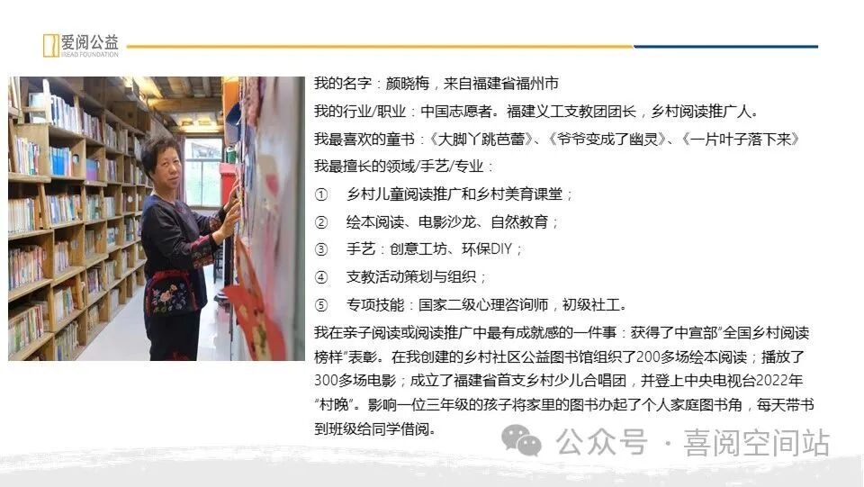 有缘在爱阅公益阅读推广活动中相识、曾获中 宣部表彰的全国乡村阅读榜样颜晓梅前辈堪称 MILES框架的现实典范。细品她将自己的不公平优势与人生追求不断融合、发展的故事,可以带给我们启发,用全新的视角看待我们自己的优势和劣势。