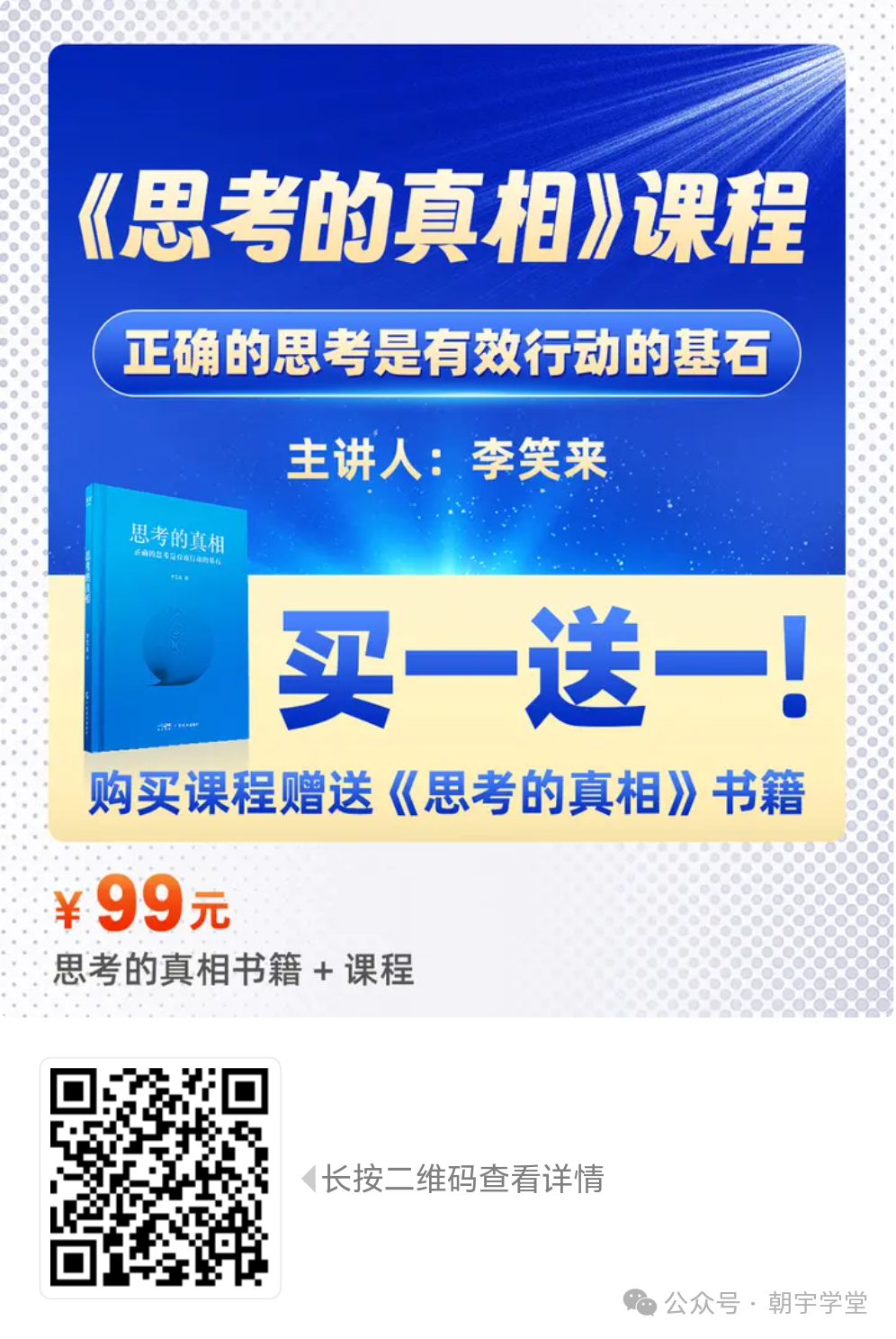 1)社群成员真实的成长故事集,《长期主义成长手册》电子版2册;2)8月1-7日,价值199元的官方读书会,用《思考的真相》、《财富的真相》理论拆解工作、生活、学习相关决策与行动等,包括减肥、育儿、家庭建设等;3)额外专属,和朝宇一起共读《思考的真相》;