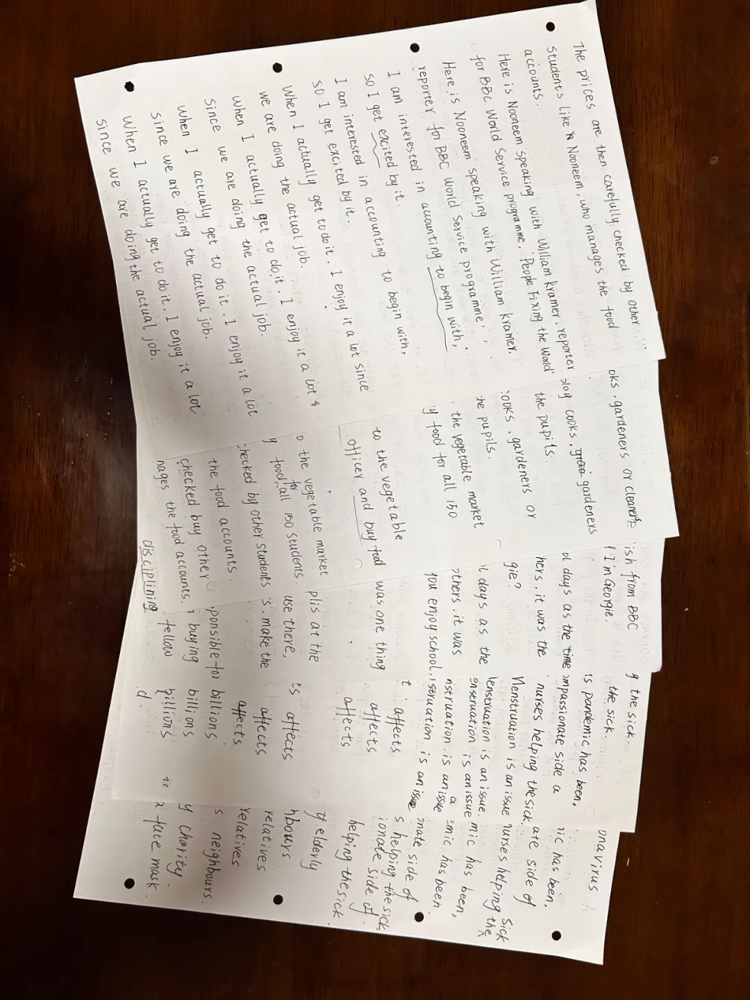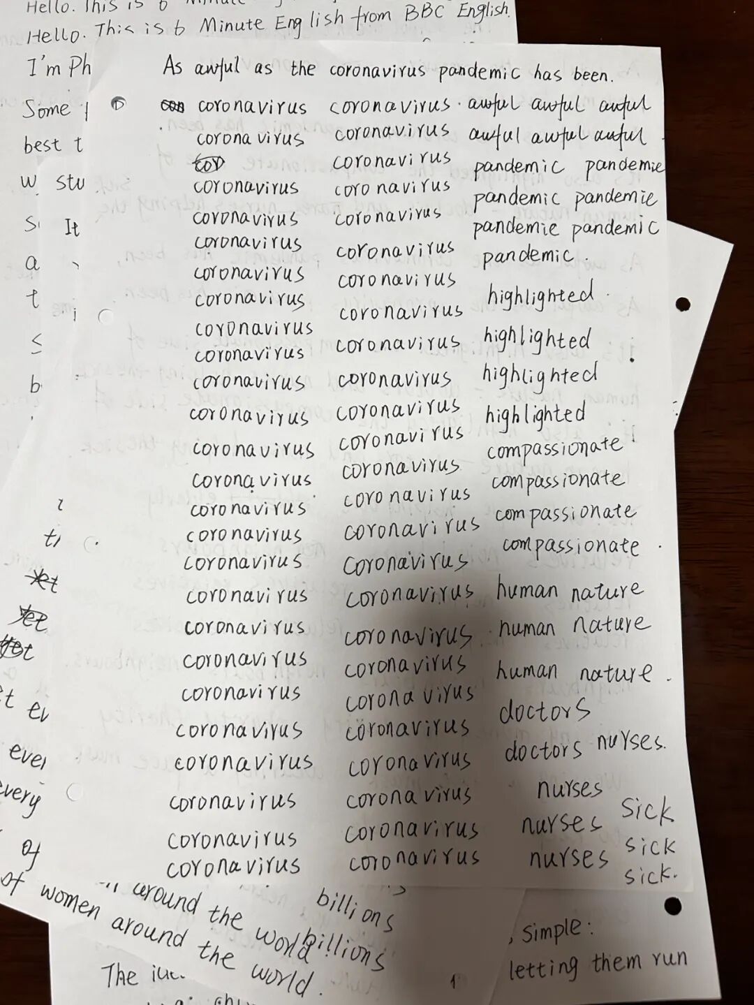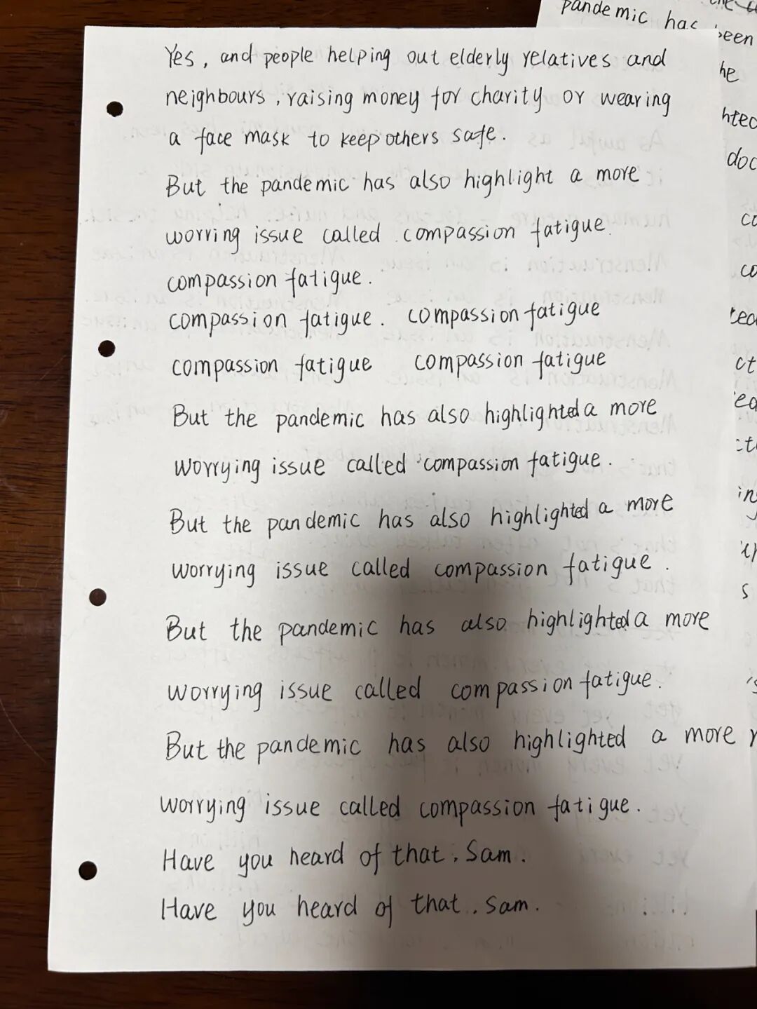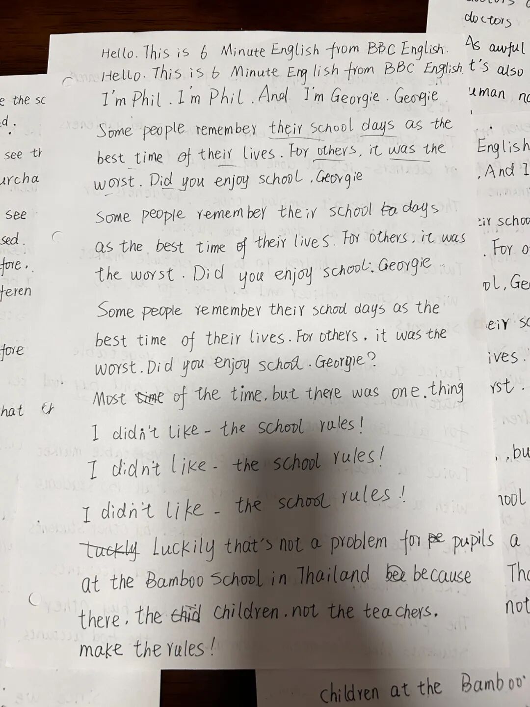 在纸上抄写有一种魔力,重复听一个句子并反复抄写它,就会印在脑子里。等你在下一个地方遇见它的时候,会想“啊,前面见过啊!“等你再去重复听全文的时候,会觉得处处熟悉无比。重复要的就是这种再认的感觉。这种熟悉感会积累信心。我投入听力到现在419小时了,这是年初刚开始听的时候无法想象的。越往后学,我就越不能忍耐自我欺骗和虚假。我的速度越来越慢,内容越来越少,却越发踏实了。我拥有了很大的耐心,哪怕一天只能反复抄写3个句子,也是很值得的。慢慢的一天抄一点,反复循环听着一个句子抄。眼睛看过去,总觉得是容易的,好像这也认识,那也认识,实际上要用的时候根本调用不出来。而书写和念出来却很慢,要用的时候,它就在脑海里了。所以我又回到了熟悉的,特别特别真实做法,慢慢的,一点一点掌握它。我要的只是一张安静的书桌,一点扎扎实实学会的技能。每天晚上在纸上写字的时候,纷乱的思绪都会慢慢静下来。在我眼前的不再是沉重的英语大山,只是眼前这一个单句循环的句子而已。一遍一遍,更熟悉了。半年之后的现在,进步是很明显的。我看到英语眼神不再下意识跳开了,会定睛看看那是什么意思。跟人说起业务中的名词,也能脱口而出英语单词。以前根本不敢张嘴的。心态也发生了很大的变化,从着急忙慌走马观花,变得很沉静很踏实。一句就是一句,慢慢抄写掌握就是了。这种习惯也影响到我生活的其他方面,我渐渐连走路都慢下来,稳稳地一步一步走,心里没有那么容易慌了。学《古代汉语》基础,一个词一个词地抄,虽然四册书很多知识点,慢慢抄就是了,一次抄一两个。一次读一篇,不妄图一口吃成个大胖子,连夜看完。