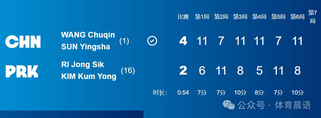 第二局,朝鲜组合开始发力,在双方打成6:6后,朝鲜组合连续得分,最终以11:7折回了一局。第三局,双方打得非常胶着,一度打成了5:5平,8:9这样的比分。不过,经过调整后的王楚钦和孙颖莎,最终还是以11:8拿下第三局。第四局,中国组合表现出色,并没有给对手多少机会,开局便取得了7:3,此后更是连续得分,最终以11:5拿下这一局。第五局,朝鲜组合折回一局,比分为11:7。不过,在第六局,王楚钦和孙颖莎没有再给对手机会,以11:8再胜一局。这样,王楚钦和孙颖莎的混双组合最终以大比分4:2有惊无险的战胜对手,历史性的夺得国乒奥运史上首块混双金牌。