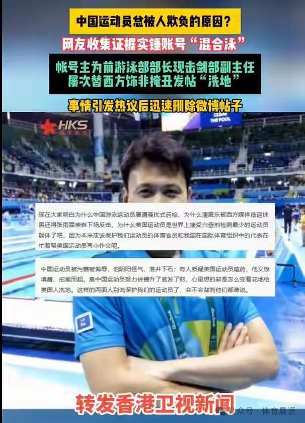 谁也没有想到,当中国游泳选手在巴黎奥运会上为国争光时,当美国游泳在巴黎奥运会上集体“变脸“之时,却曝出国家体育总局下属的游泳运动管理中心原游泳部主任,现自行车击剑运动管理中心副主任袁昊然,在网上发布多条不恰当的言论,公然为美国游泳站台,为变脸洗地,并且对中国游泳健儿进行嘲讽,还阴阳潘展乐。日前,这位在网络上的无良人士被网友举报。而国家体育总局在了解到这一情况,宣布了最新的决定。真的是大快人心。
