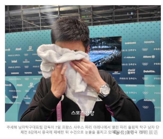 在被中国乒乓球男团横扫,无缘半决赛后,韩国队教练朱世赫很是伤心。他难以接受这个结果,在接受采访时哭了:“每次遇到中国队,我们都会输,已经20多年了。但我们球员每次都挑战了自己,也真的很了不起。“他们怀着代表国家队比赛的心,因此从未想过放弃,他们也尽了自己最大努力。”接着,朱世赫表示,他对于抽签非常的失望,因为在他看来,以韩国队的实力,不应该这么早的与中国男团相遇,韩国男团有实力配得上更好的名次。“我对抽签结果非常失望,这对球员来说太残酷了。如果我们有其他的抽签结果,我们就不会处于如此境地。当然,如果我们想赢得金牌,我们就必须击败中国队。“当我看到昨天瑞典队(七号种子)击败德国队进入四分之一决赛时,我非常生气!”
