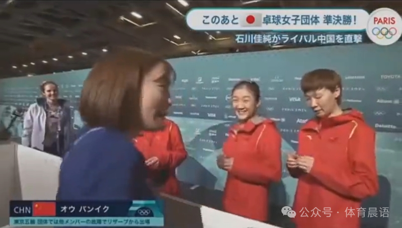 在巴黎奥运会乒乓球女团半决赛中,中国女团三名选手陈梦、孙颖莎和王曼昱直接送给了韩国女团一个3:0,将对手横扫出局,自己也晋级到了决赛。到了比赛结束后,日本乒乓球队的前队长石川佳纯以富士电视台特别主播的身份,用中文采访了刚刚打赢比赛的国乒女团。