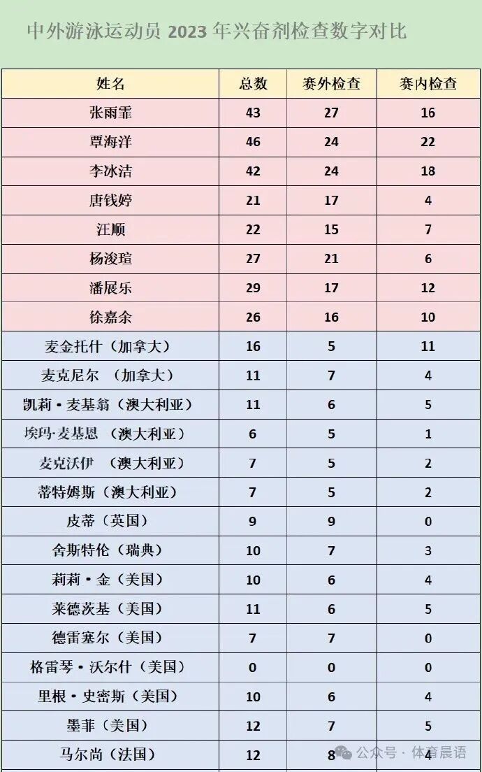 然而,被国内观众寄予厚望并看好的中国游泳队,却在抵达巴黎的这些天里,遭遇到了史无前例的不公平对待。中国国家游泳队营养师于良在个人社媒进行了爆料,对中国游泳队所遭受到的不公正对待表达了不满。他在社媒上表示:“来法国正好10天,这10天里,我们31名运动员除了训练,倒时差,还累计被ITA查了接近200人次兴奋剂,平均每天接近20人次,每人平均被查5-7次。早晨6点还没睡醒就来了,中午午休也来,没办法只能在酒店大堂沙发休息,晚上九点多还来要一直熬到下半夜…这几天下来我和几个检察官也都混熟了,其中一个和我说:“你们查的确实太多了,不过我们也没办法,都是上面给我们的检查计划,我不敢想象中国运动员和你们工作人员的配合度这么好,如果换做其他队伍,你知道我说的是谁(美国队),他们早就嚷嚷受不了,然后到处投诉了。”