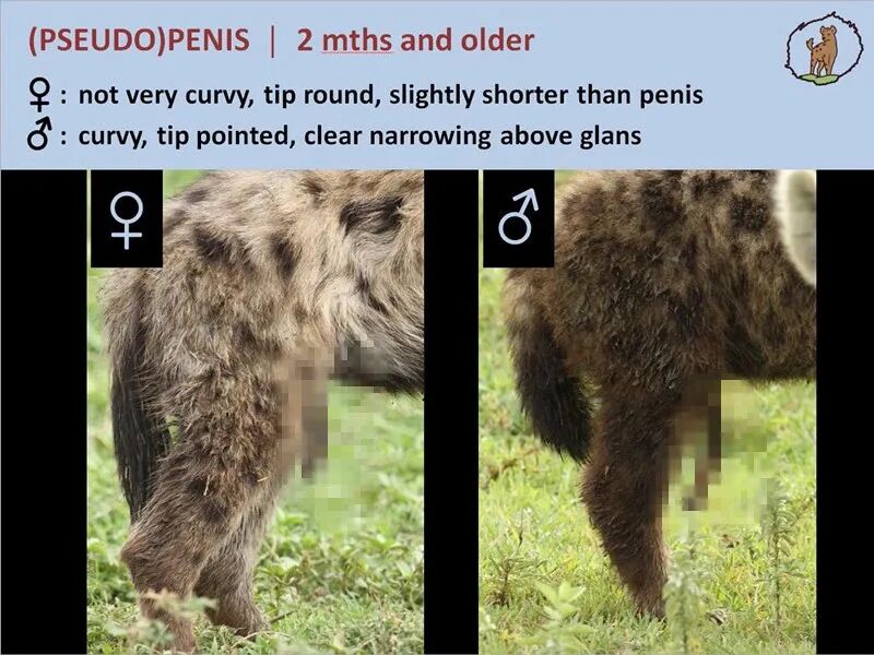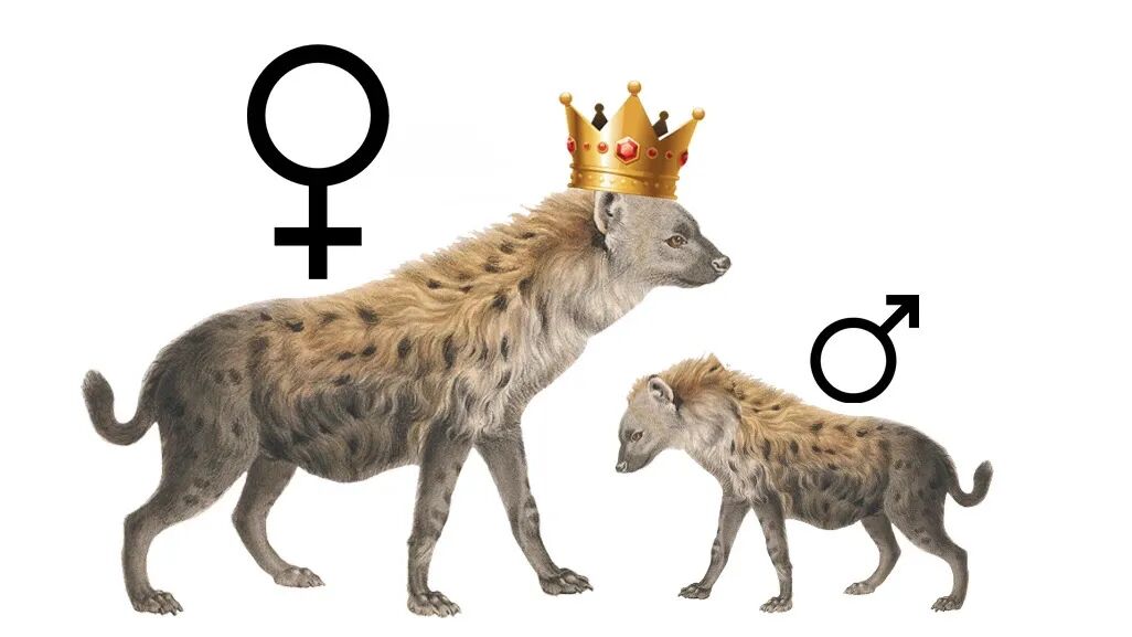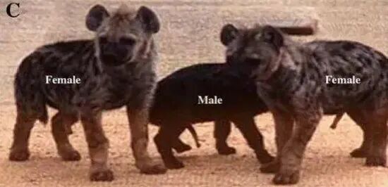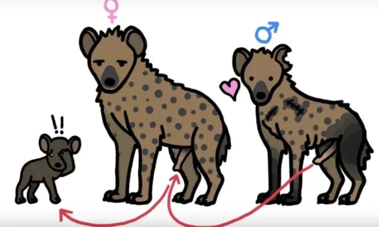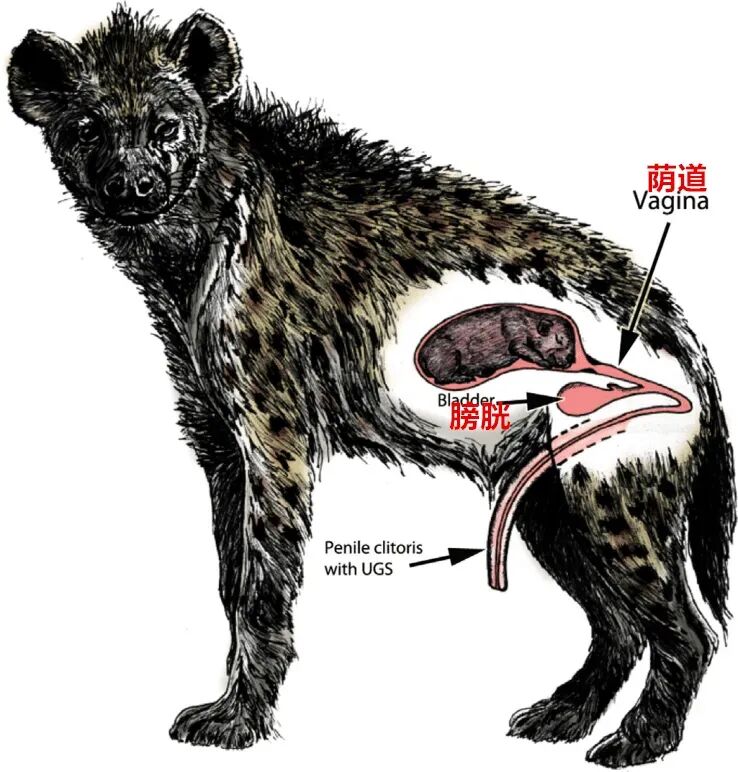 在远古时代,很长一段时间都是母系氏族,整个族群以母性为轴心。在我们西南,依然还有一些走婚族,以母为尊。斑鬣狗中,母鬣狗个头大于公鬣狗,在后腿的中间夹着一根长长的丁丁,妥妥的雄性无疑。俗话说,外行看热闹,内行看门道。母鬣狗的丁丁其实是为生存和掌握控制器而进化出来的。鬣狗像羊群一样成群结队的出行,团体作战技术强,遇到强大的对手和猎物,整个鬣群分散开来,前面的做掩护,佯攻,为猎物后面的同伴争取撕咬对手屁屁核心部位做配合。