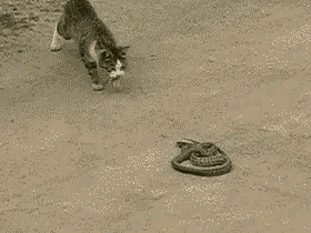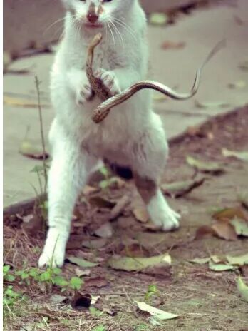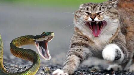 猫和蛇的行动速度完全不是一个级别,猫可以360度躲开蛇的攻击,猫可以用嘴巴咬住蛇,加以猫爪辅助,蛇轻松被拿捏住。你可能会说,蛇也会缠绕呀?是的蛇会缠绕没错,可是猫的缩骨功可不用说着吹牛的,假如被缠绕住的话,主要脑袋有个出口,身体顺势就溜了。这也是猫不怕蛇的根本原因了。蛇动作慢,在动作上,猫可以躲开或者给蛇造成四面受敌,八面楚歌的处境。