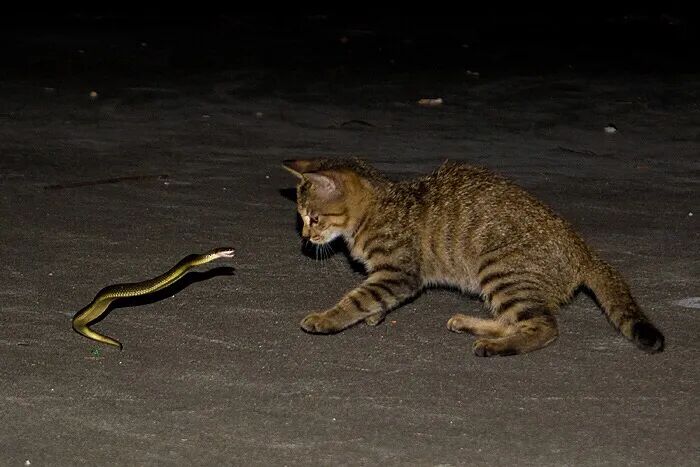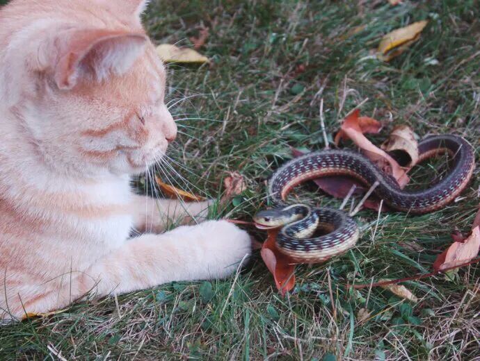 看到很多视频里,猫轻松拿捏了蛇,把蛇当做玩具一样逗来逗去,看起来一点攻击力都没有。