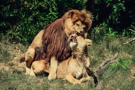 雄狮子为了获得延续子嗣的机会,需要不断地强大自己、进行各种战斗;雌狮子为了生存和安稳,忍受痛苦和雄狮子交配。