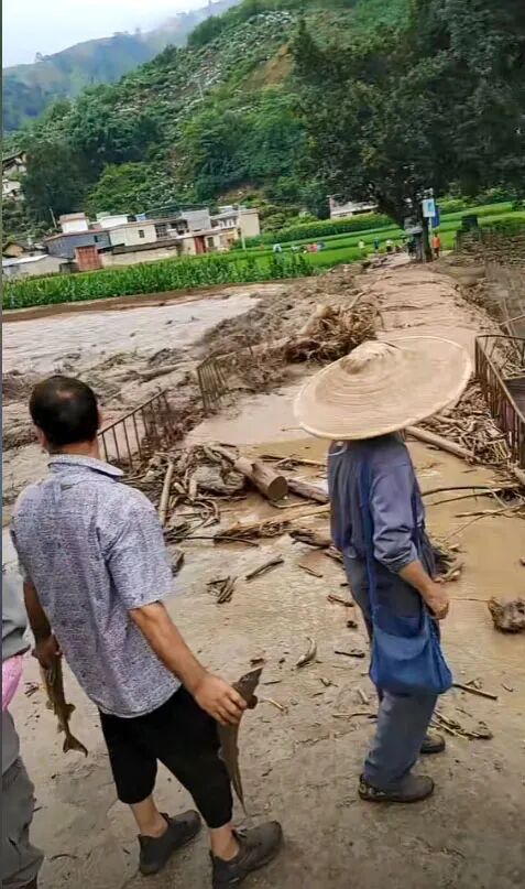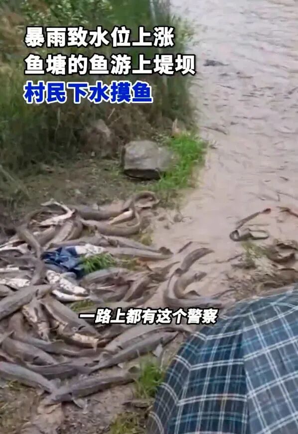 鲟龙鱼不同于一般的鱼,它是国家重点保护野生动物。暴雨袭来,当地乡镇机构派了民警在沿路巡查,一方面阻止村民打捞,另一方面也保护村民的安全。