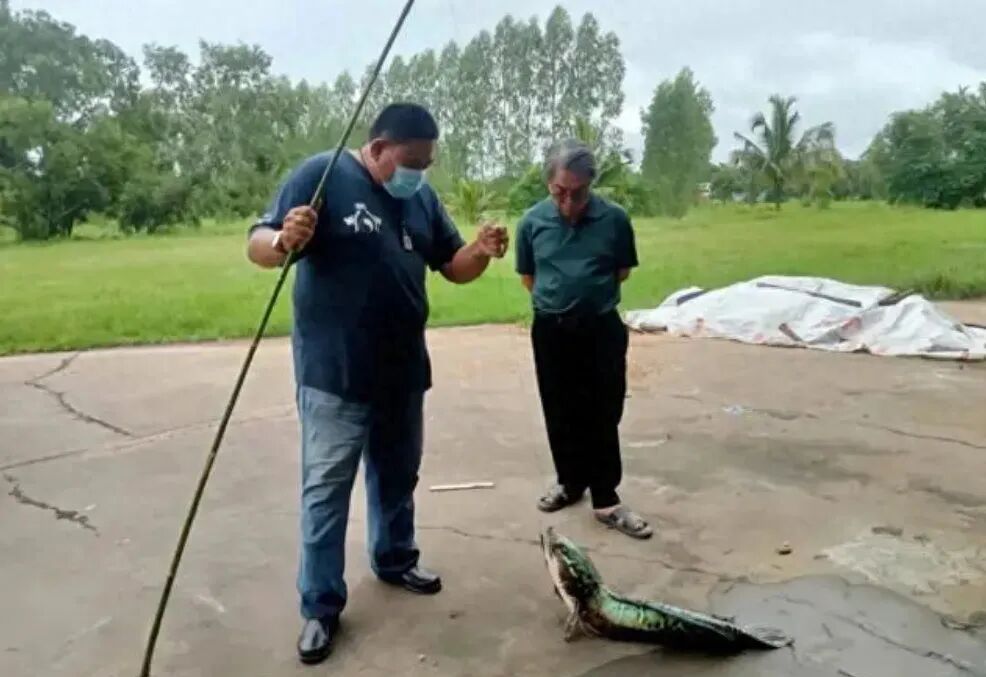 有人说那是小鱼在救母亲,这到底是怎么一回事呢?我们一起来看看。01钓到一条绿皮怪鱼夏日周末,太阳格外耀眼,李大哥趁天未热,像往常一样把头天晚上备好的钓鱼包往肩上一扔,启动摩托车,直奔鱼塘,找了个好位置开始了一天的快乐。许是心情好,又或天气好,李大哥今天手气好到爆。一溜烟的功夫,一会一条,一会一条,看的旁边的渔友忍不住打趣道,老李啊,你今天走狗屎运了。李大哥嘿嘿笑着,没有做声,今儿个确实是丰收,避免别人眼红 ,他想再钓一条,早点收工回家去。想法刚落,猛然,他手上的鱼竿一阵厚重力道传来,好家伙,有鱼上钩了,今天还真是想什么来什么。这一条鱼似乎有点特别,比往常的鱼重很多,鱼线放的有点远,他没法一下子直接甩上来,只能一点一点收短鱼线,把鱼慢慢从水里溜过来。到底是什么鱼他也不清楚,估摸着过了几分钟,看清了这条鱼有点奇怪,头部很短,嘴部突出,身体颜色艳丽,还有三条暗黑、金黄相间的纵纹,其他地方墨绿色,看起来像一条绿皮怪鱼。
