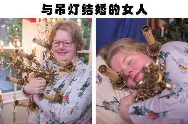 人与动物结婚的人在某些时候也出于精神寄托,还不少人和物品结婚,英国某女子和自己买的灯结婚,还有人和自己结婚。