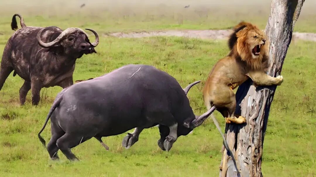 虽然我们中国的水牛都很憨厚、勤劳、质朴,但是非洲水牛不一样。