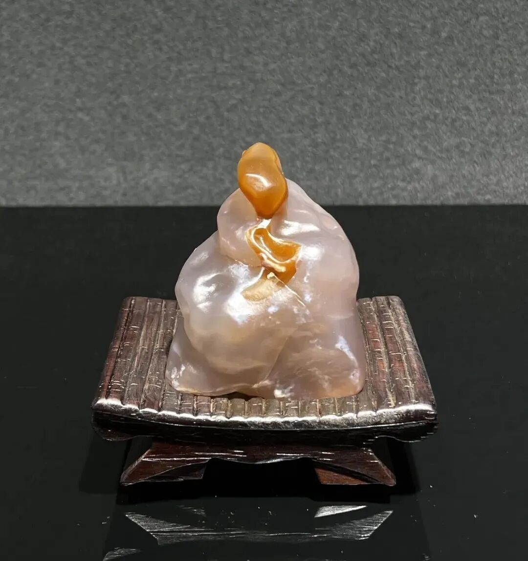 无伤无裂,质地上乘,底座朴素简约,更突显了石头的天然美感。观赏者无不赞叹其形神兼备,是难得的佳作。