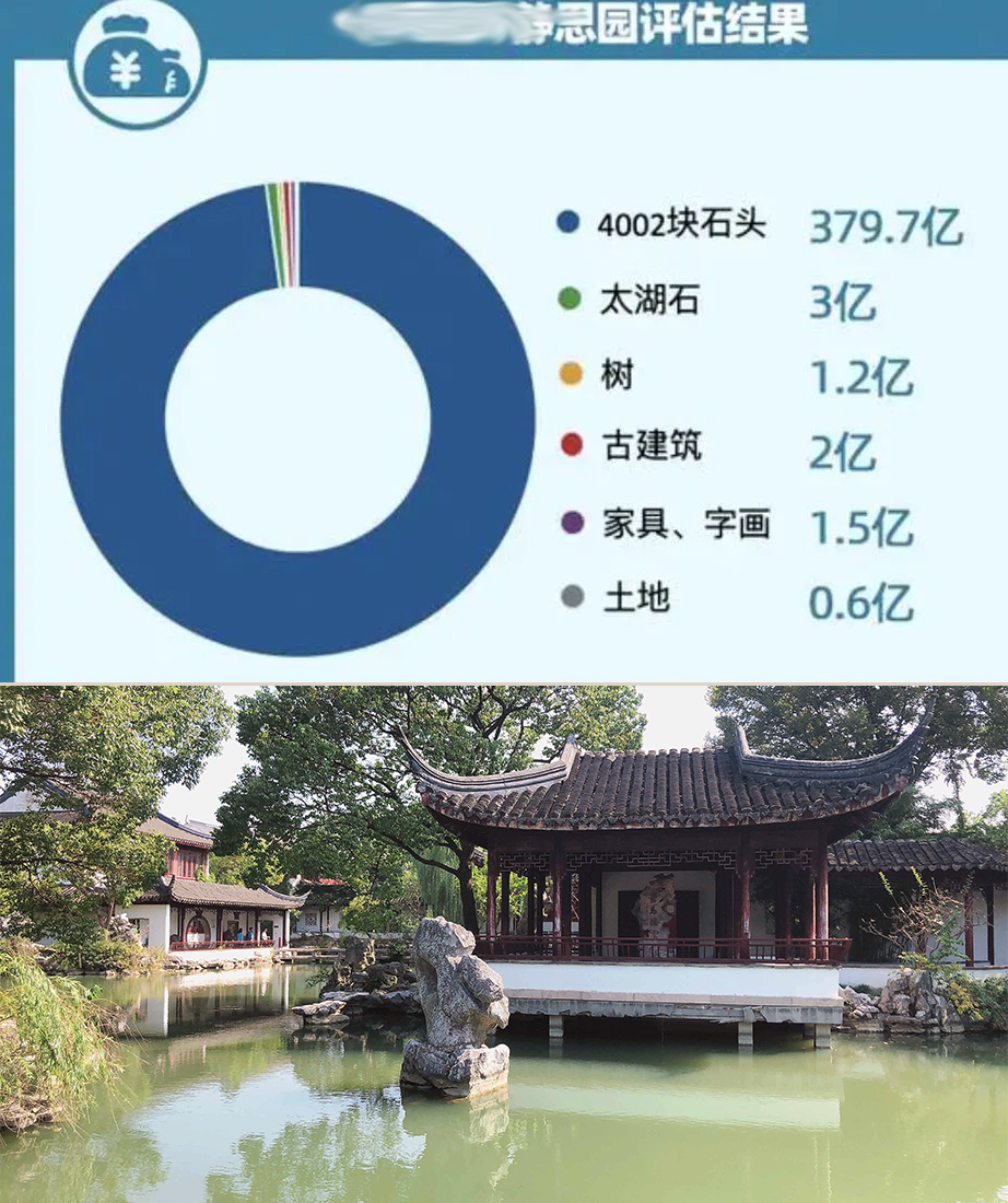 4002块石头,估价379.7亿!太湖石估价3亿!颠覆普通人认知的是报告里的“土地”,仅估价0.6亿!就是6000万。我们是不是可以换个角度理解,这个报告里最真实的可能只有土地估价。
