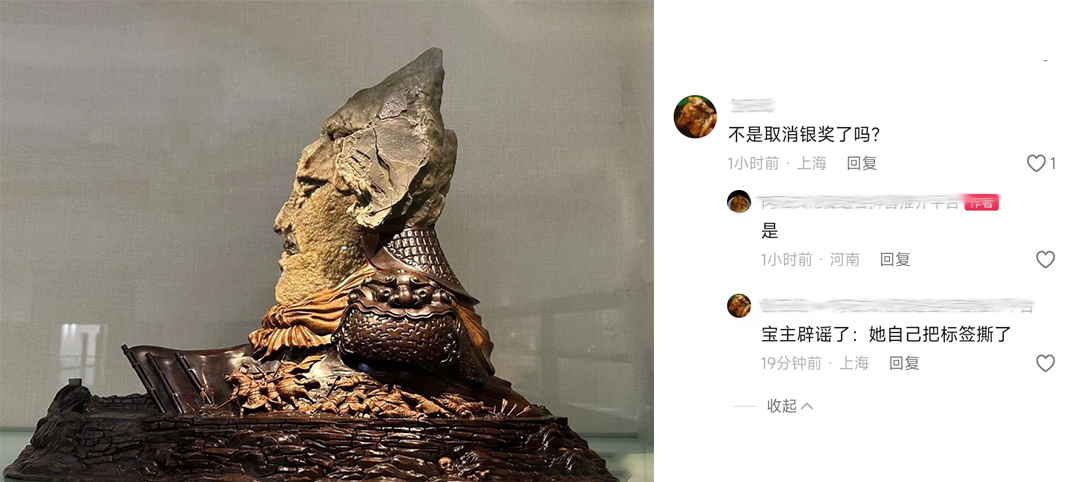 另外,还有传言说,“不是取消银奖了吗?”,后有视频作者的补充,不是银奖取消了,是藏家自己把标签撕了。