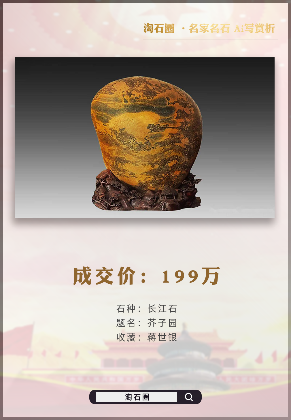 介绍 :【奇石故事汇】公众平台是淘石圈奇石自媒体平台旗下,讲述奇石故事的公众平台,欢迎石友讲述您的玩石故事。