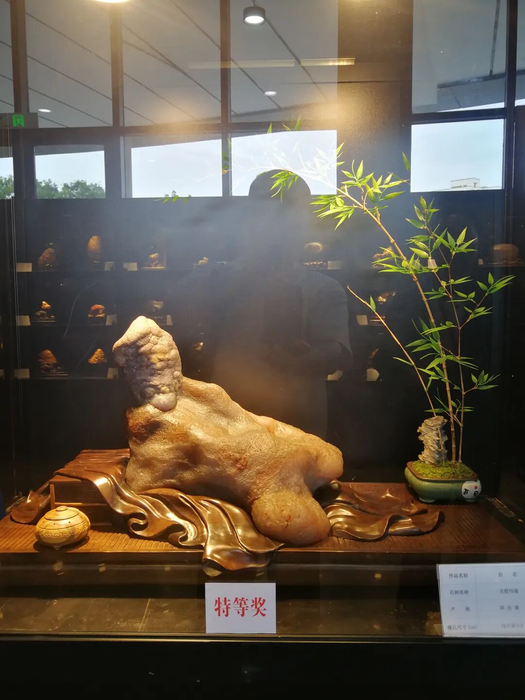 黄山石展上,一块内蒙稀有的戈壁玛瑙拿到最高奖特等奖。这是它首次亮相国内大型石展。因为其石种的稀有性,以及独特的象形,在石展上备受瞩目。