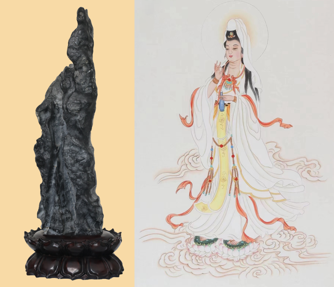 《观音》奇石是一方让人忍不住低头膜拜的石头,膜拜的是慈悲为怀,普度众生观音菩萨。