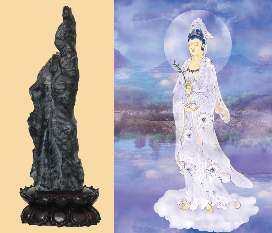 终于,在2017年春节时候,女老板通知吴先生来取石头,看到完整的实物时,吴先生震惊了。这是大自然的鬼斧神工,也是因缘际会的造化。立于面前的这尊大慈大悲的观音菩萨简直是一个奇迹!