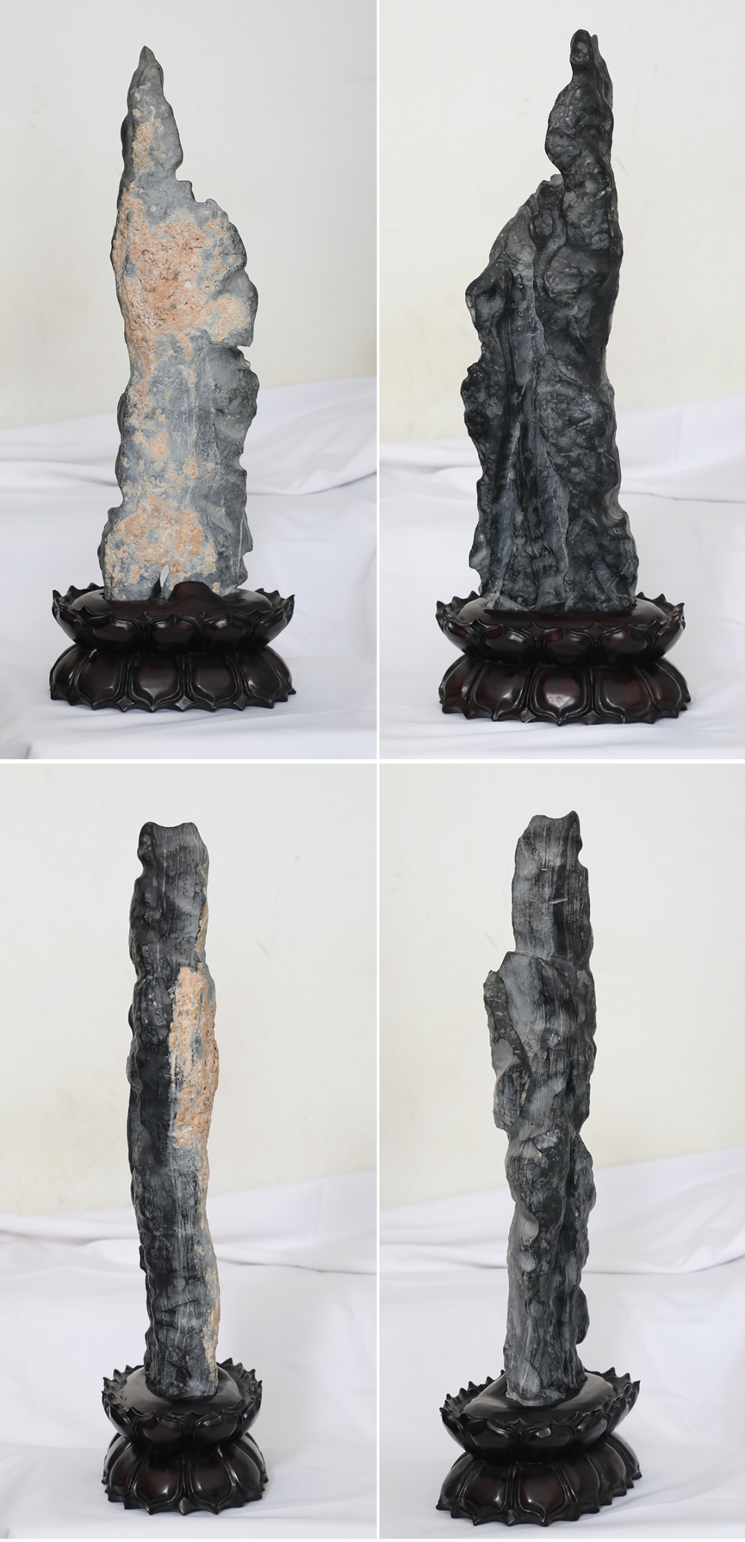 和女老板反复沟通后,吴先生买下了这块石头,并请女老板帮忙清理和制作底座。整个过程需要一个多月,吴先生时常翻看当时拍摄的原石的照片,想象着清理干净后的样子,心理的期待与日俱增。