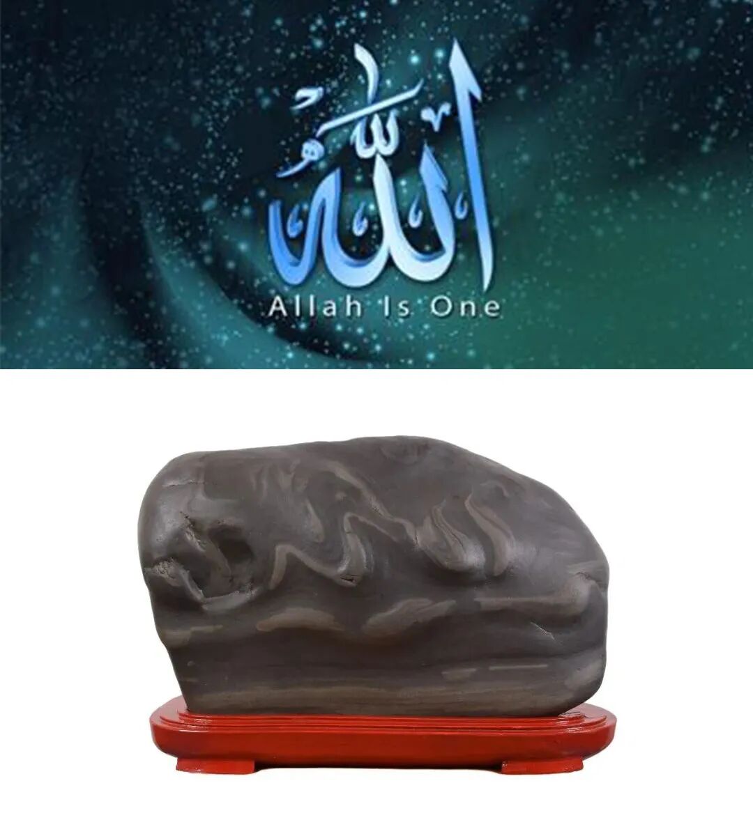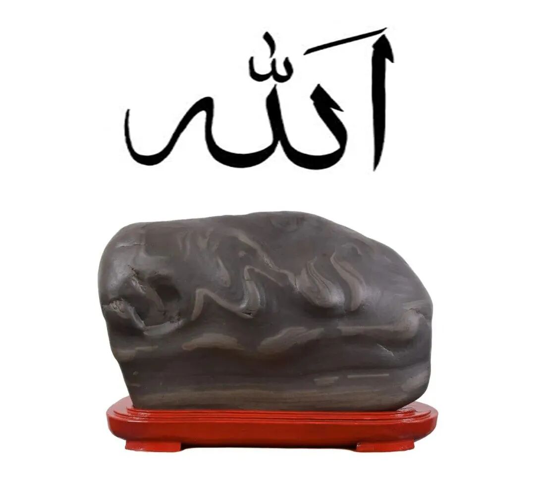 而最新的消息是,一个来自青海的黄河石(见下图),在一堆会长副会长见证下完成了交易。这块石头的看点说是,石头上形成的安拉(Allah)。仔细看半天,既没有找到“安拉”的汉字,也没有找到Allah的字母。所以,不禁要问安拉何在?