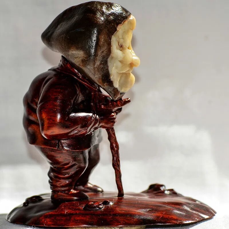 鼻尖和下巴的突起也和高龄老人面部特征神似。眼睛和嘴巴微微凹陷,脸颊的肉也已经褪去。它是一位年近百岁的老人的写照,命名为《岁月》非常贴切。