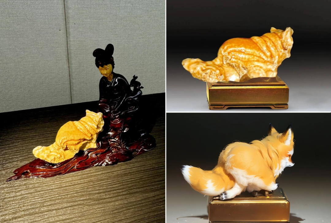 沙漠漆名石有不少,但是真正给人留下深刻印象的不多。成交方面自然是1380万的“撒尿童子”和580万的“海螺”。没成交的,具象的不多,在今年上半年露脸比较多的《金狐》算一个。阿拉善的展和呼和浩特的展都有它的参与。