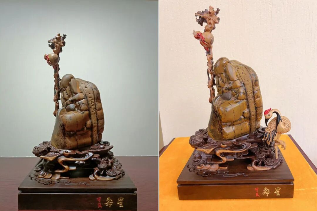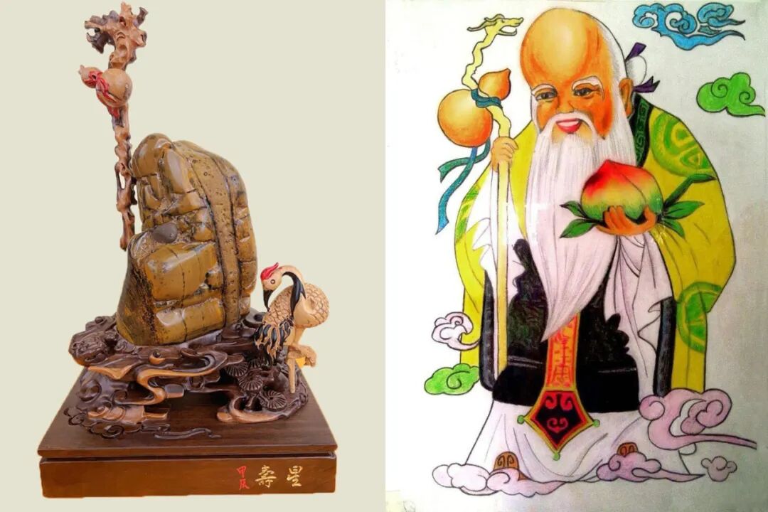 寿星经常出现在福、禄、寿三星组合中,包含了非常丰富的祝福。因此,在注重寓意的奇石收藏中,福禄寿主题的藏品非常多,都是图个吉祥。