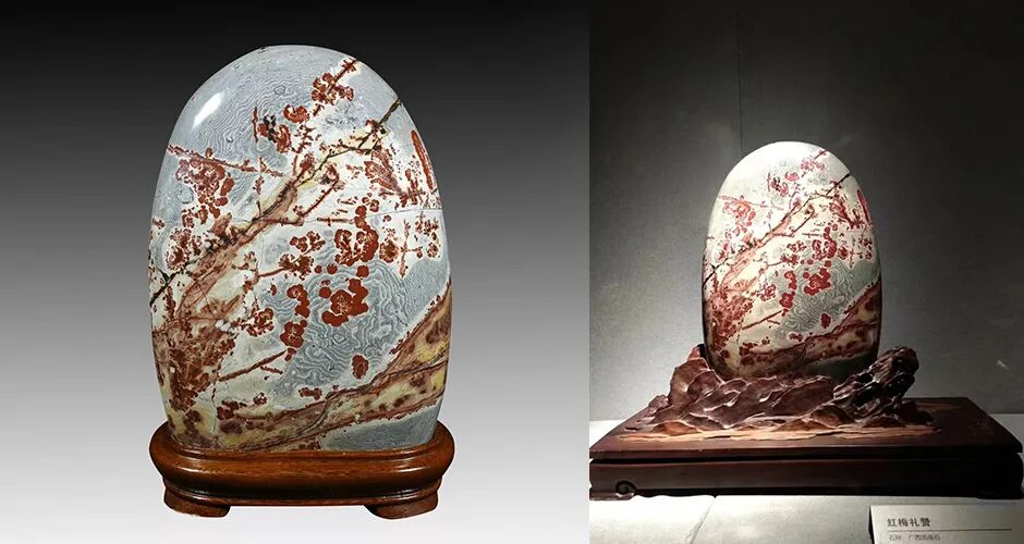 这块名为“红梅礼赞”的广西国画石,也是网传2019年成交的一方奇石,只有39万的成交价,没有更详细的信息。现在,它出现在山西当代赏石艺术博物馆。