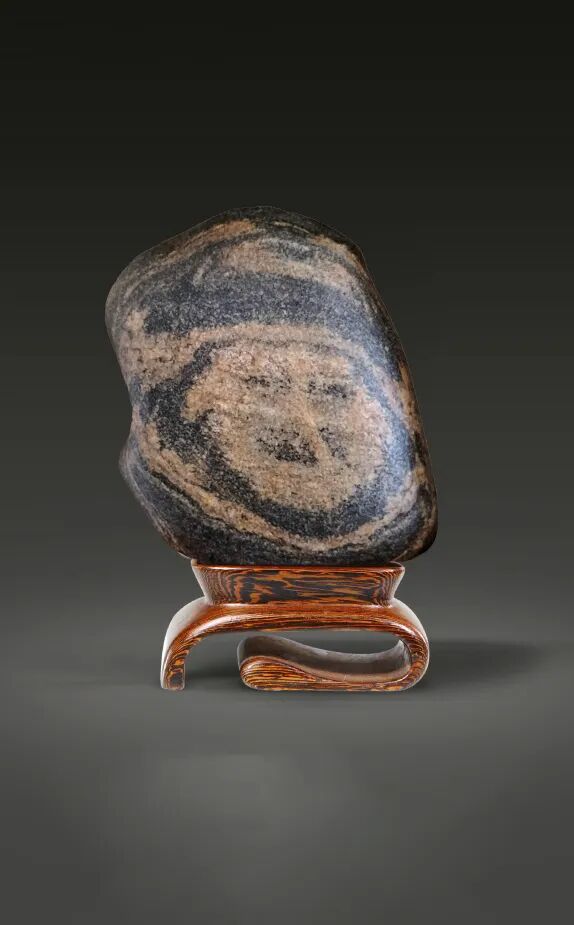 现在,请眯起眼睛,欣赏这方汉江金纹石,“慈母”。当你眼前变模糊时候,一个微笑着慈祥的老妇人形象变得清晰,她五官清晰,比例匀称。高挺的鼻子,突出的颧骨,瘦削的脸颊,无不刻画着饱经风霜的印记。