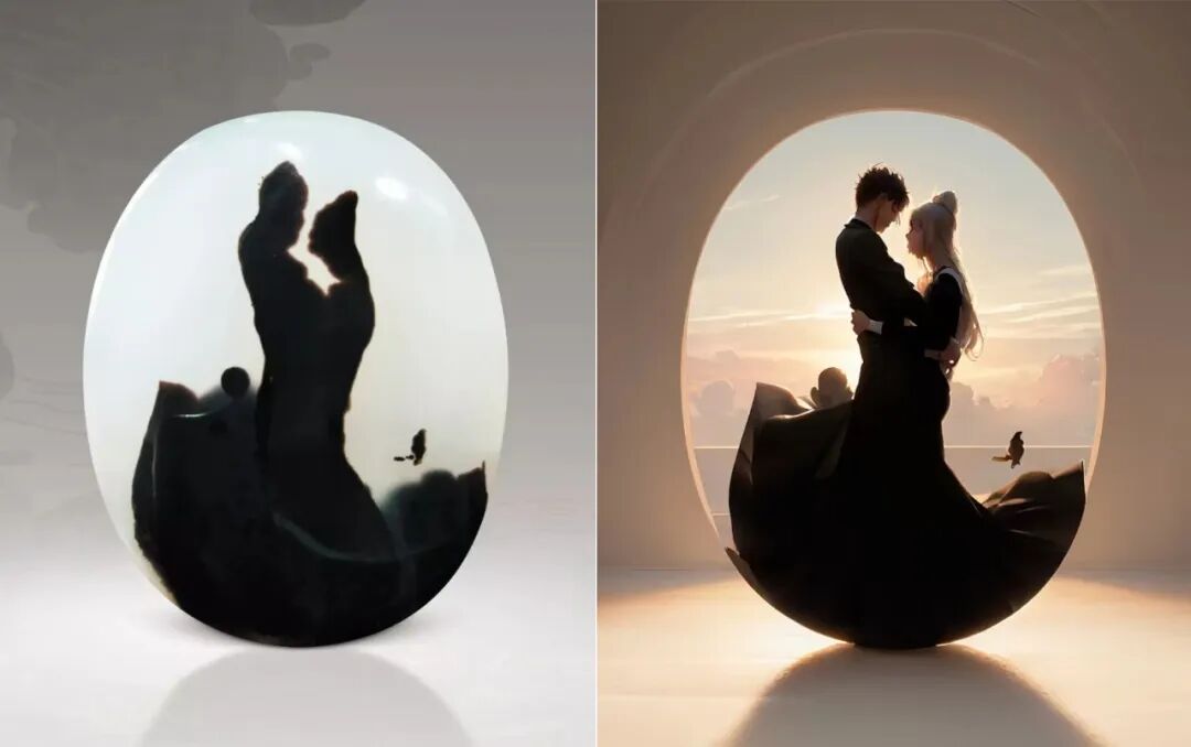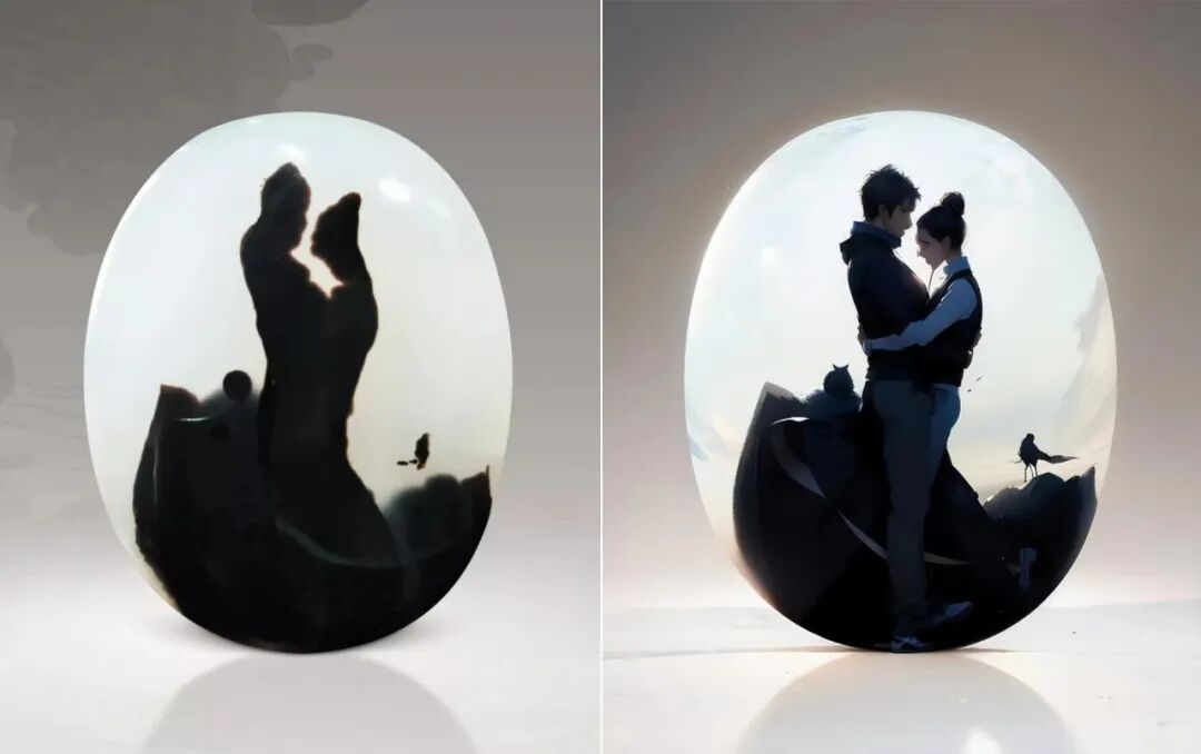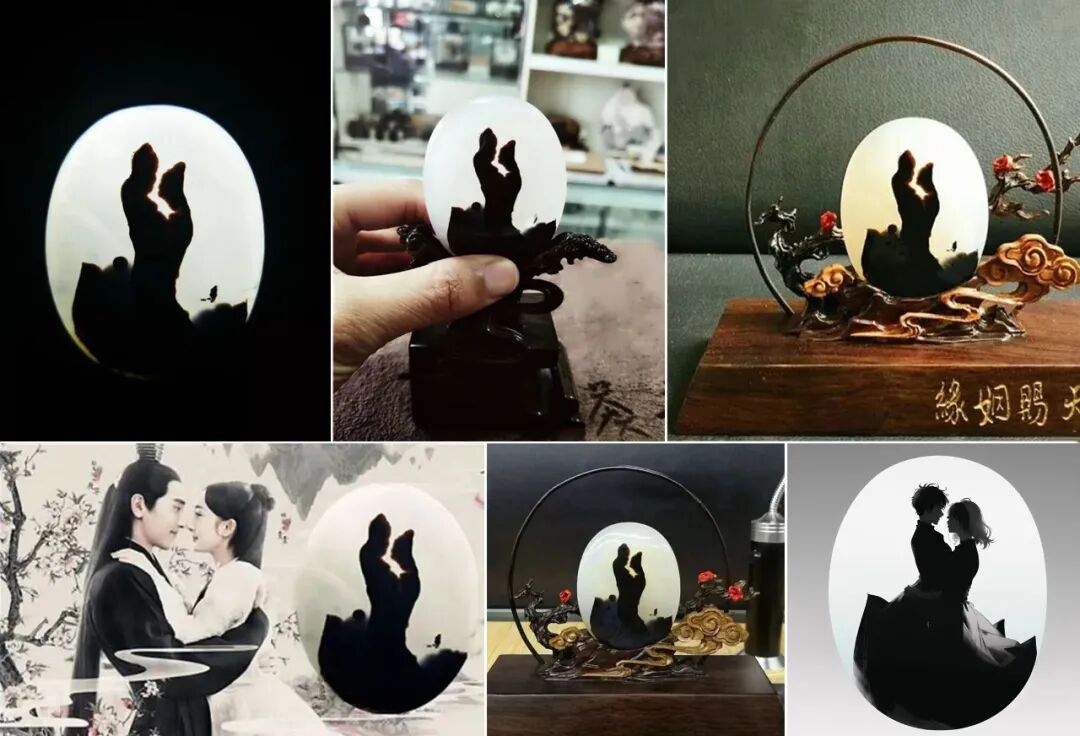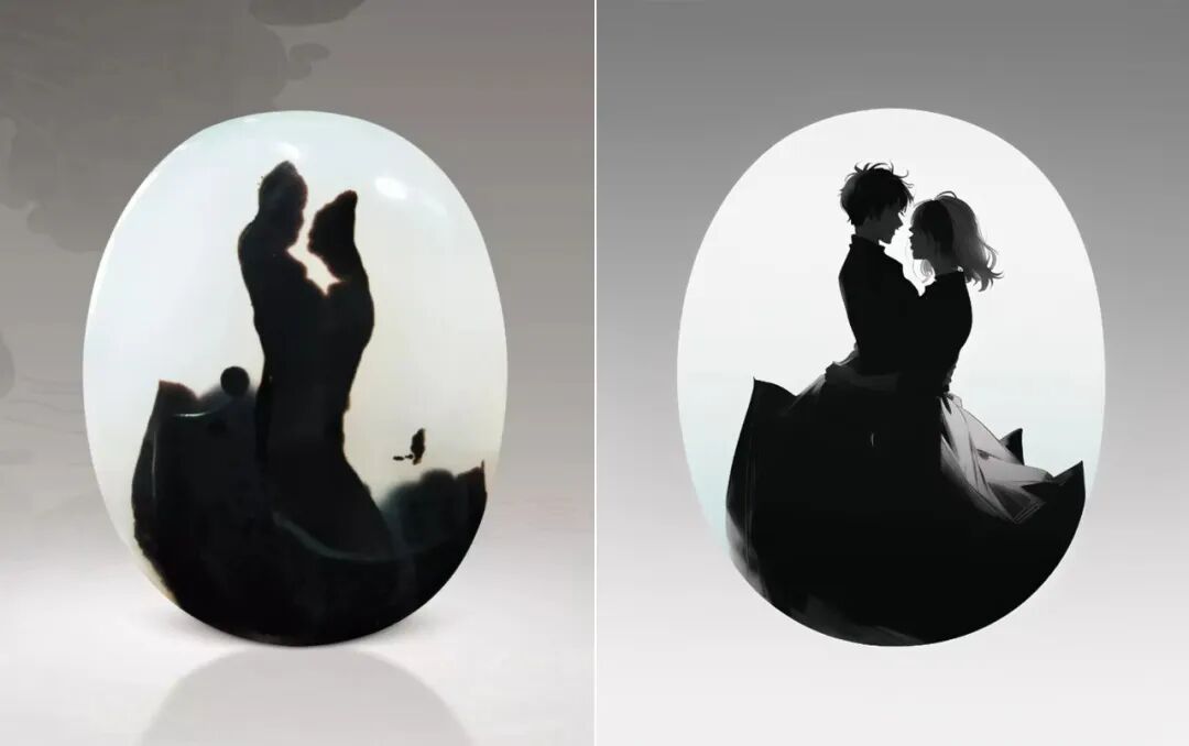 一男子在群里看到别人发了些好看的石头图片,其中有一个,呈椭圆状半透质地,黑色图案好像是一男一女相拥。好奇心驱使就去打听。
