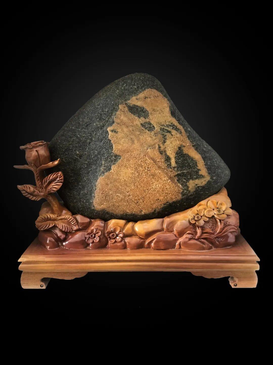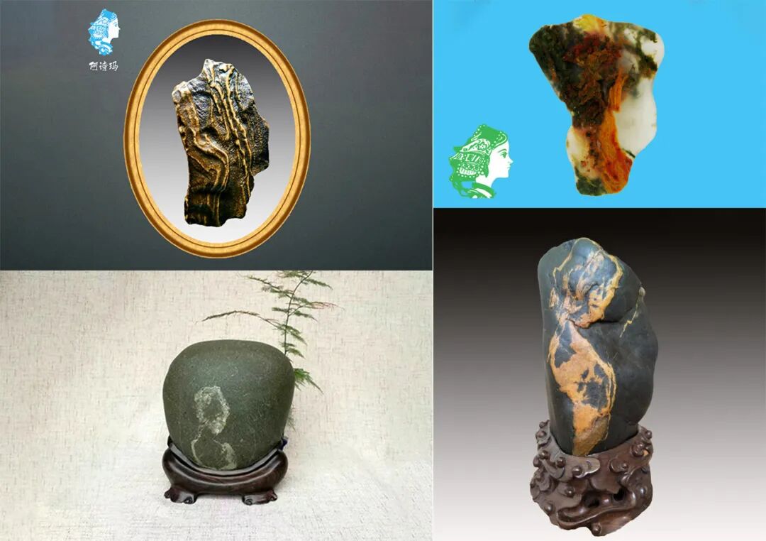 一个石头,画面呈现出一个女性侧像,头上有复杂的发饰。如果藏家对少数民族有深刻印象,会朝这个方向去思考,最后奇石取名为“阿诗玛”的概率极大!因为从名字的影响力,文化的传承以及形象的知名度等角度去看,这个名字都非常合适。