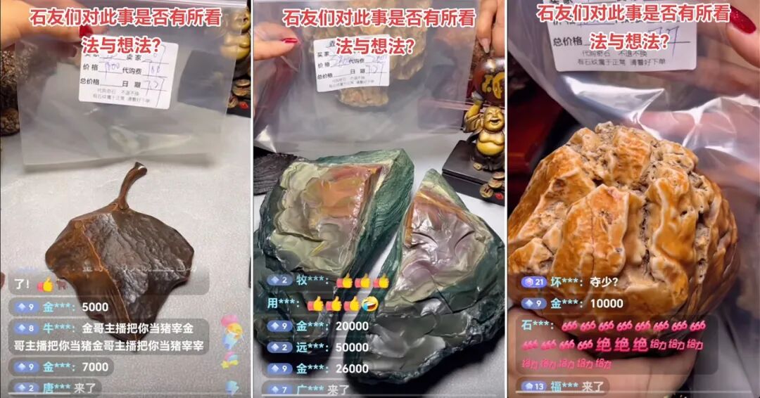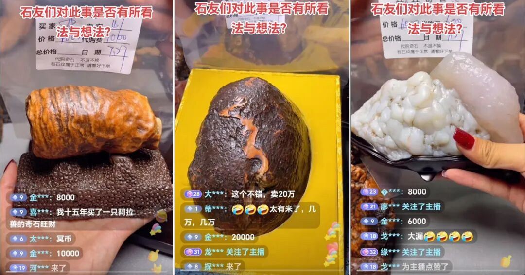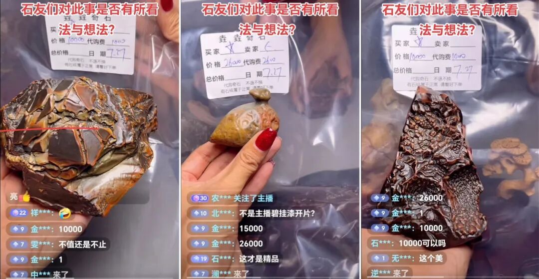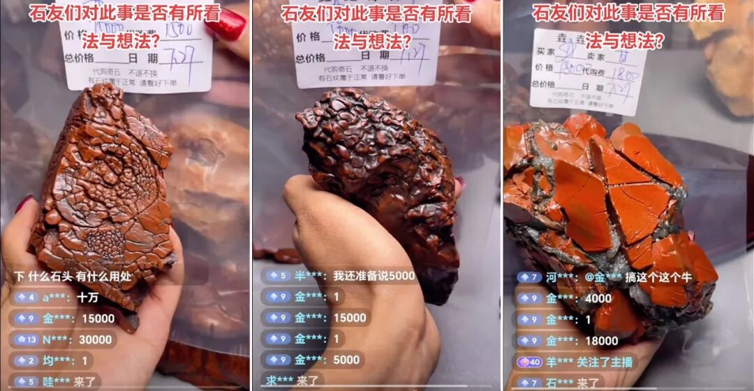 而同样的故事在27号晚上又上演了!这次有心的石友提前端着小板凳去围观,把那些戈壁石挨个给截图保存了下来。本文拼图引用,特此鸣谢。