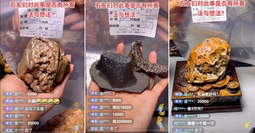 而经过二次筛选能完成一百万左右的支付,那也是很大手笔了!并且,奇石这种直播间标了“代购”,本质上相当于电商主播去卖别人的奇石,赚取部分成交佣金。
