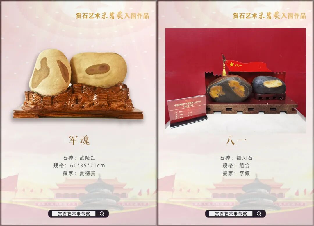 这不,一场展会送来4个“八一”奇石组合,并且各有特色。确实是非常少见。早在2022年10月份时候,赏石艺术米芾奖也有两块“八一”文字石做过展示。