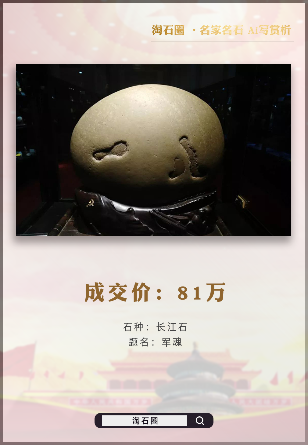 但是“八一”文字石是有高价成交记录的!早在2019年太原石展现场,这块长江石“军魂”就以81万成交价载入史册!也是迄今为止“八一”文字石的天花板。