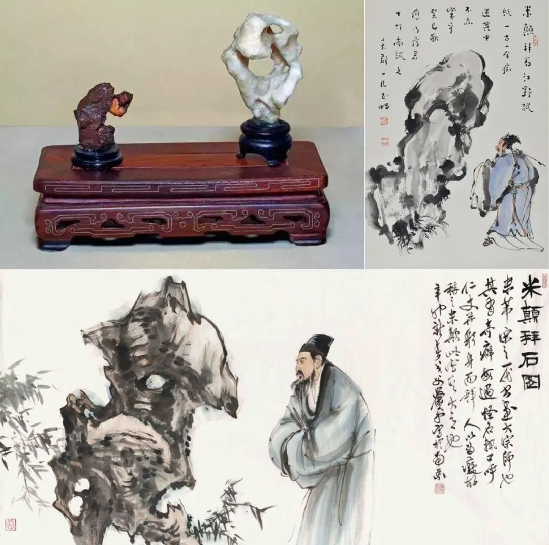 玩石头的人都知道《米芾拜石》,就好似喝酒的人都知道茅台,打篮球的人都知道姚明一样。因此在奇石的赏玩创作中,就有一类《米芾拜石》为主题的藏品。